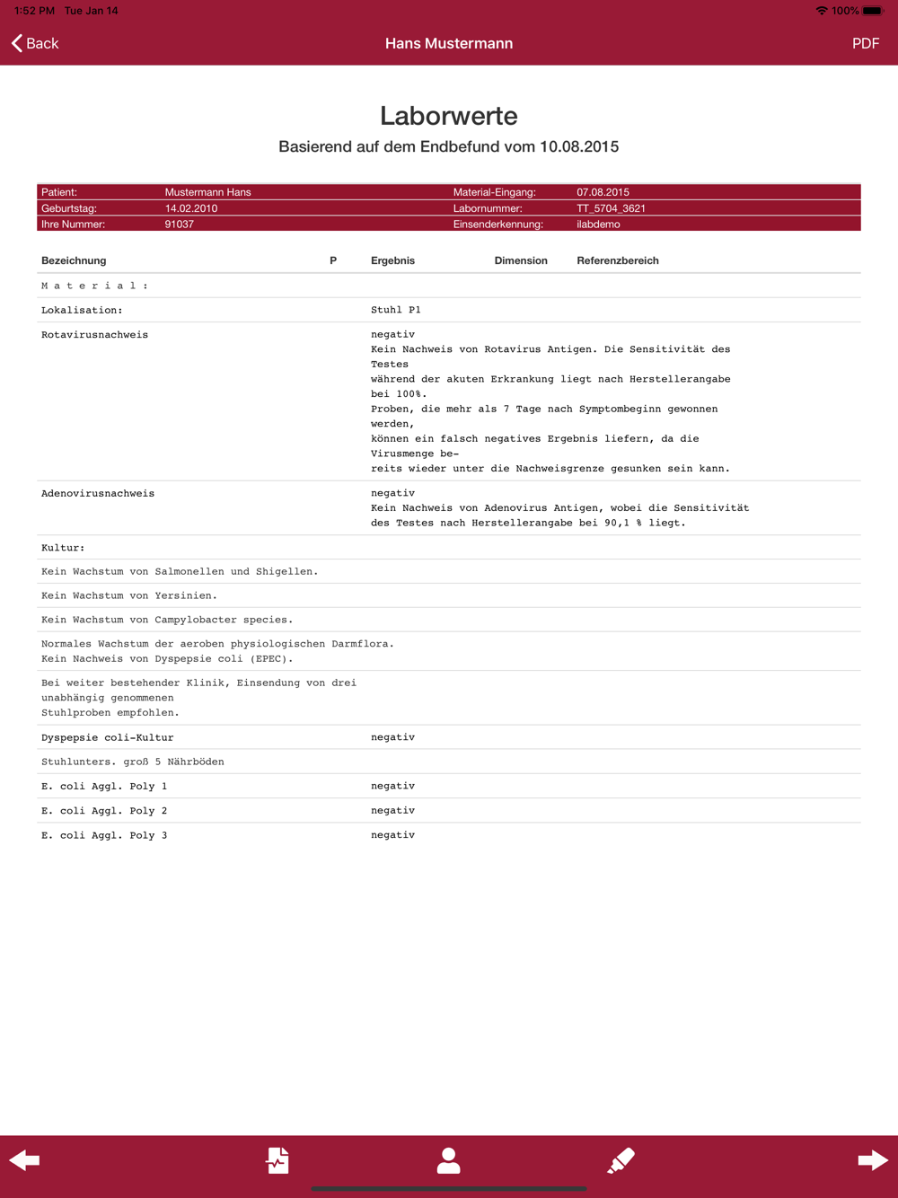 Neben einer komfortablen Suchfunktion steht auch eine PDF-Ansicht der Befunde zur Verfügung.