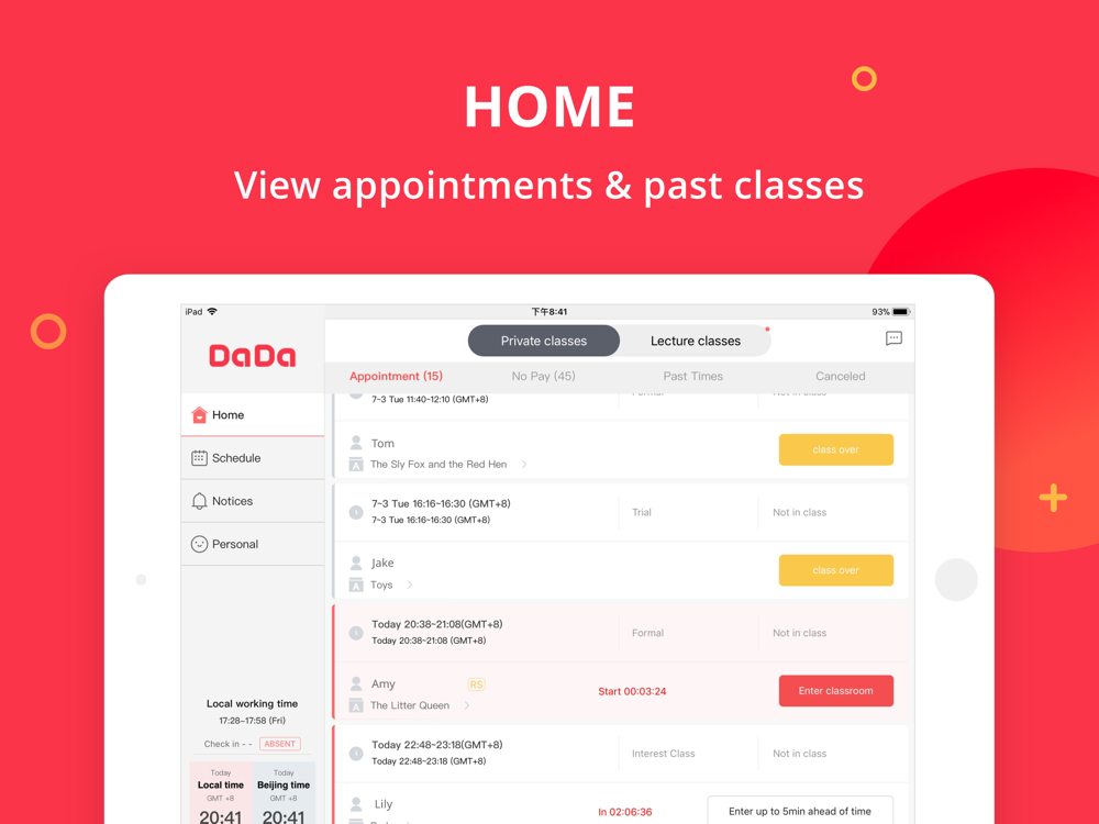 DaDa Teacher HD is a pad version app developed by DaDa development team to help teachers have a better teaching experience on DaDa platform.