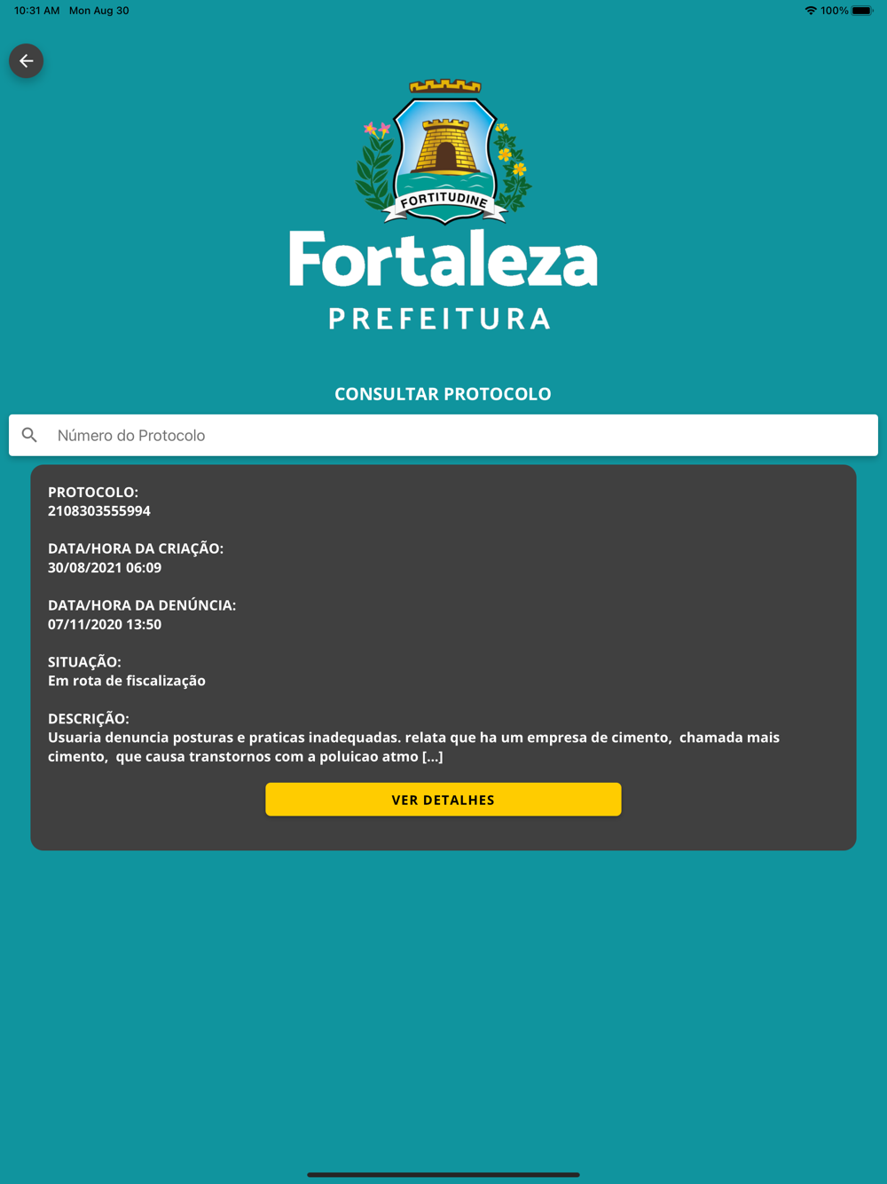 O usuário pode acompanhar também a demanda gerada. Basta inserir o número do protocolo e verificar qual o status da denúncia.
