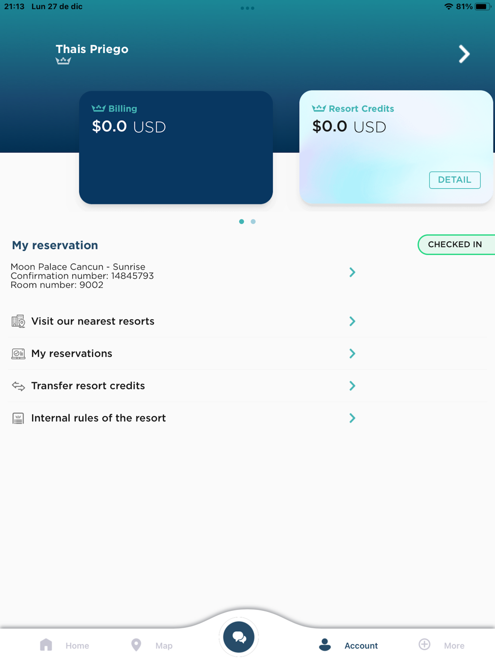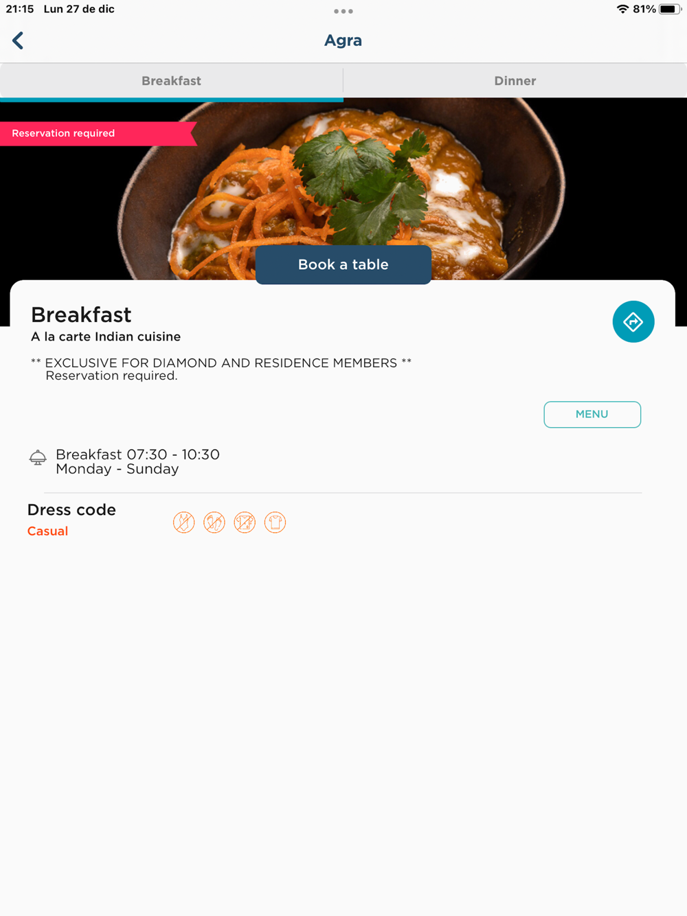 * Reserve your spa services or a table at the restaurants.