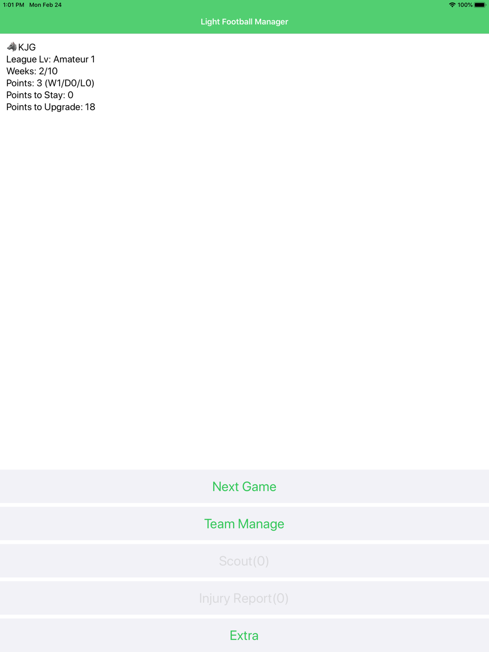 Light football manager is a casual and old school style football management game. You need to scout talented player, train your team, consider formations in order to win the games and promote to higher divisions and finally reach the peak of the world.