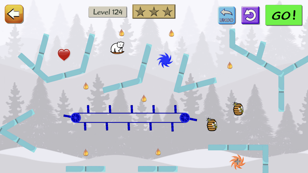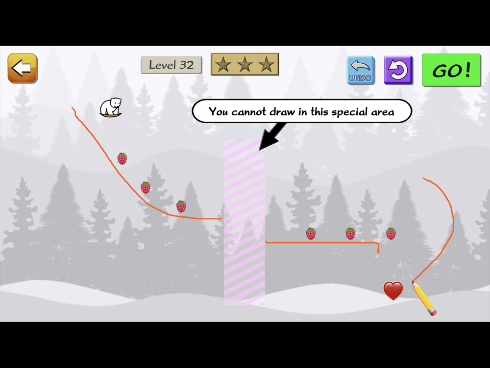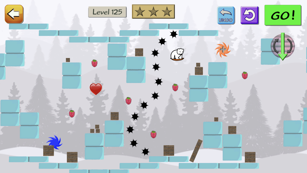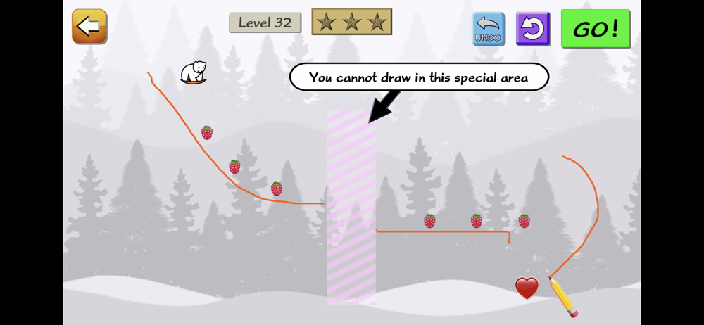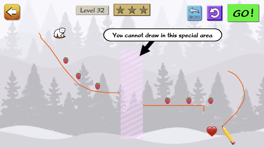 Little Snow Bear needs your help! Please draw a path he can slide down, to get to his goal (of love). It starts out easy, but over the course of the hundreds of levels, things are added, including trampolines, transporters, spikes, speed boosts, conveyor belts, and much more!