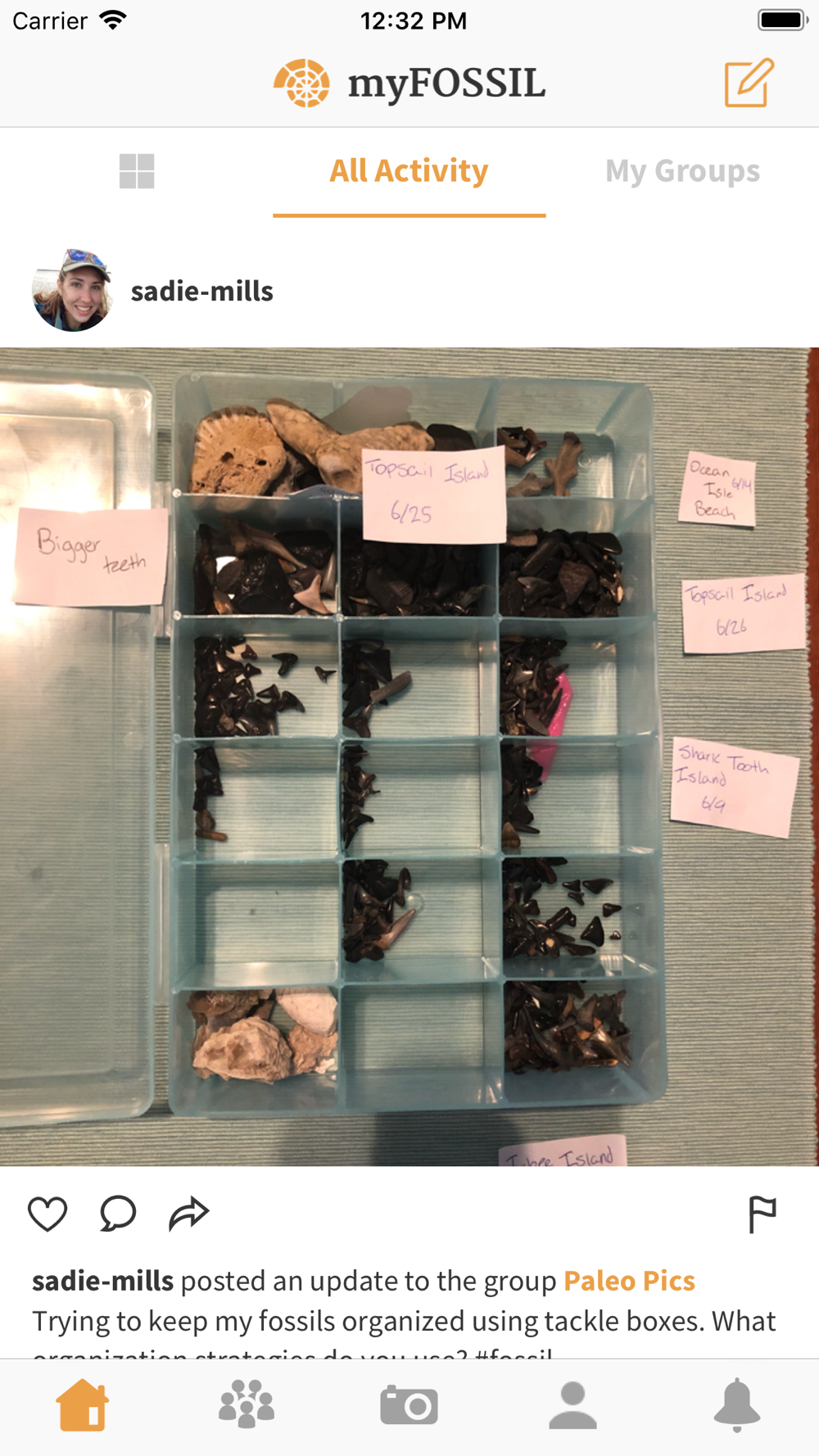 Emphasizing citizens as scientists, the myFOSSIL mobile app helps users engage with the practice of paleontology, connect with others who share their interests, and collaborate on fossil field trips, research, and more. Users follow groups focused around a topic, event, or location. They then connect with group members by sharing photos and updates about their paleontological activities. Group members may include any of the nearly 1,000 amateur and professional paleontologists currently in the myFOSSIL community. Directly from the field, users can upload fossil images to the myFOSSIL gallery to compare and discuss their finds and techniques. By adding in details about location, taxonomy, and geology, these fossil images become scientific records accessible to researchers and educators worldwide. Beyond specimens, users can also document and share paleontological methods, events, collecting sites, and more! Designed to facilitate a visually rich form of social learning, the myFOSSIL mobile app allows users to become part of the larger social paleontology community.