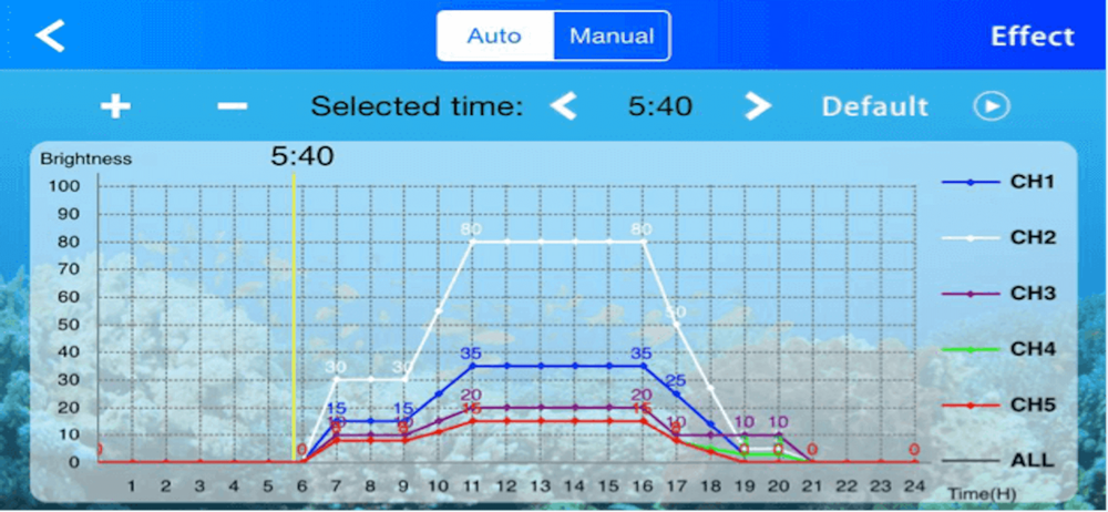 This APP is used to control InnoReef LED aquarium light, which support five dimming channels, support auto mode, instant mode, moon mode and lighting effect, coral suitable effect.