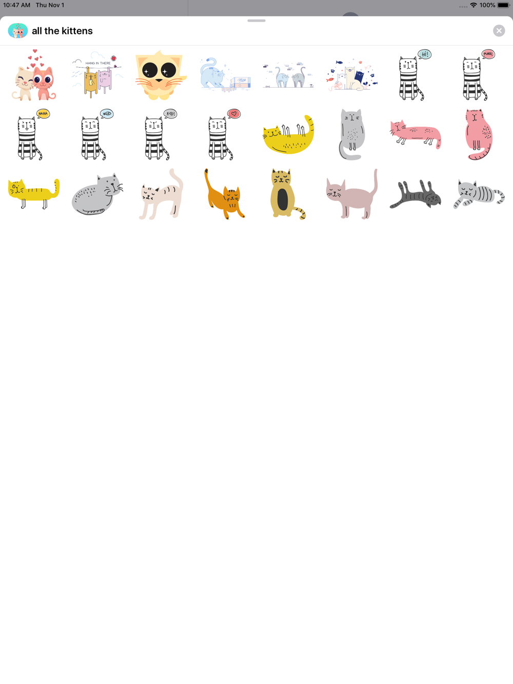 猫贴纸可以放在iMessage中的照片上或作为消息发送。 24只猫可供选择!