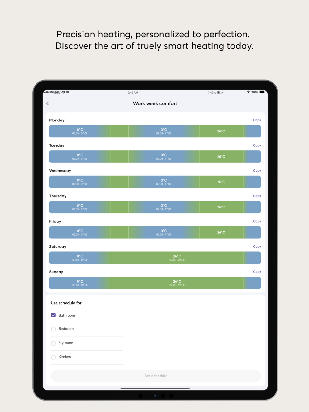 With the Themo app, you have seamless control over setting and managing your heating schedules. Its intelligent control functionality is dedicated to conserving energy, benefitting both the environment and your finances.