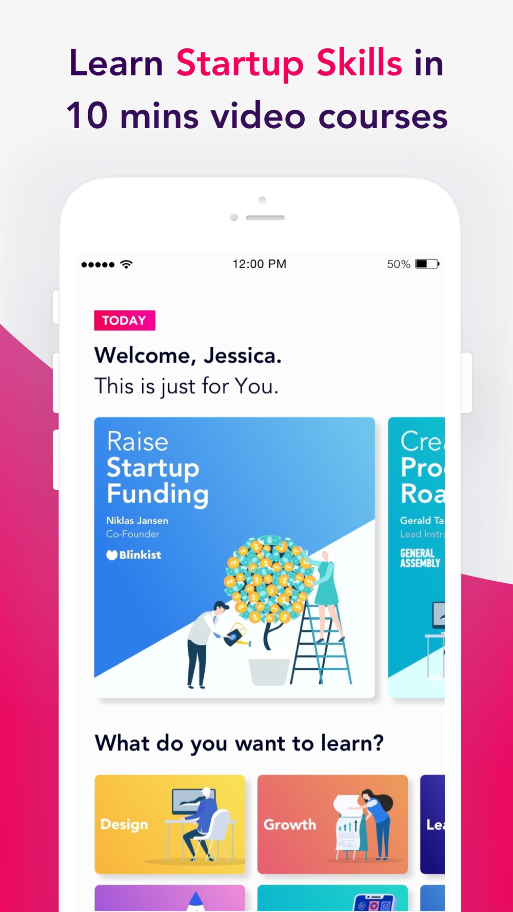 * Video classes in over 8+ categories: Product, Design & Entrepreneurship, Growth, Performance Marketing, Team, Culture, Hiring, Fundraising and many more