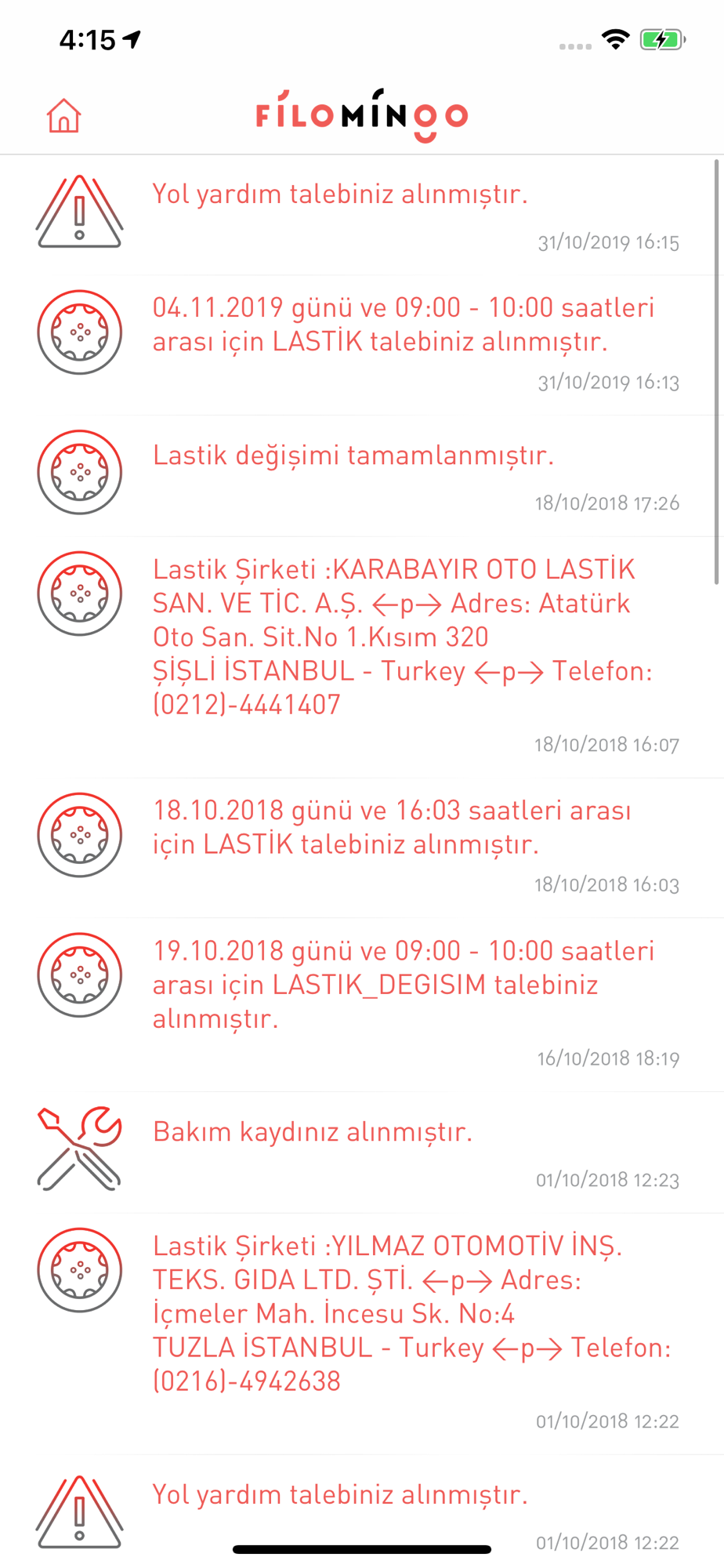 Filomingo uygulaması ile periyodik bakım, arıza, hasar, lastik değişimi, çekici gibi talepleriniz daha hızlı ve güvenli bir şekilde çözümlenir.