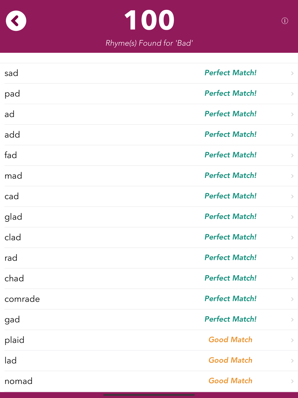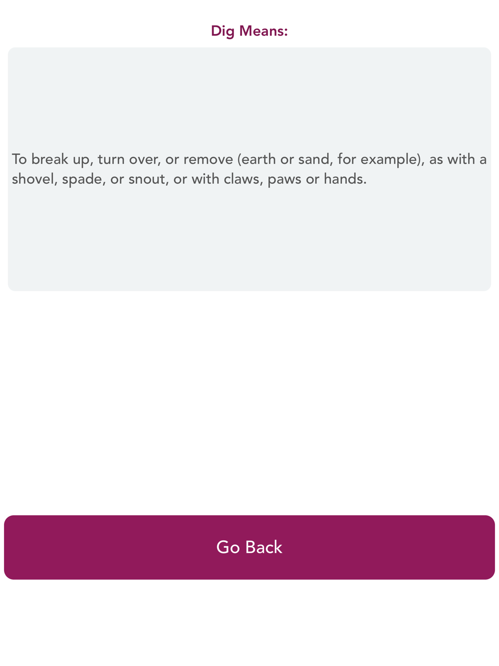- All search results will show if a word is a perfect or close match to the word you searched for