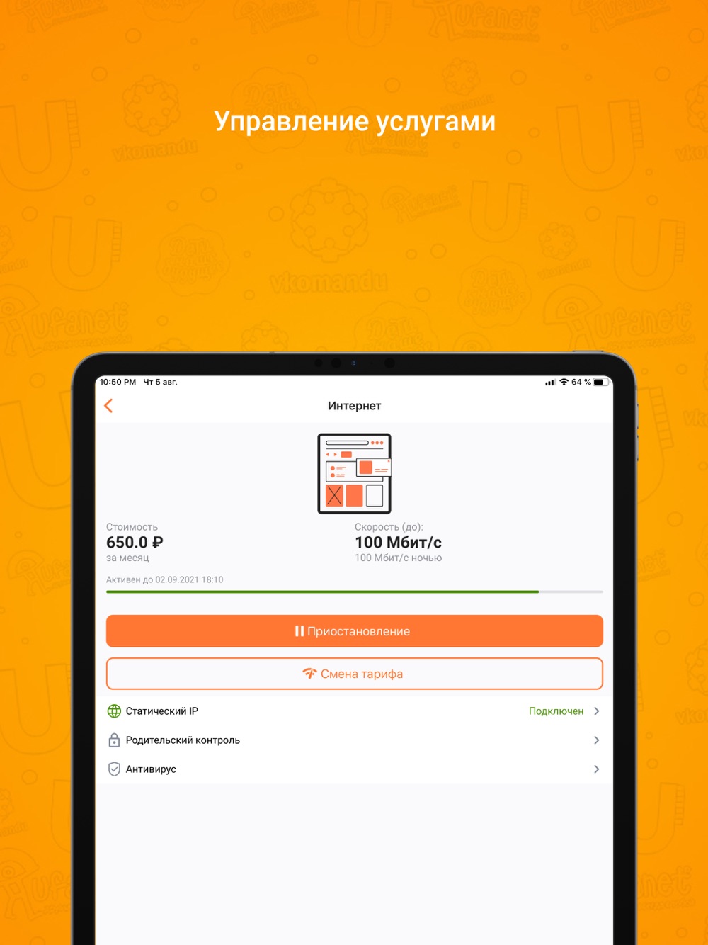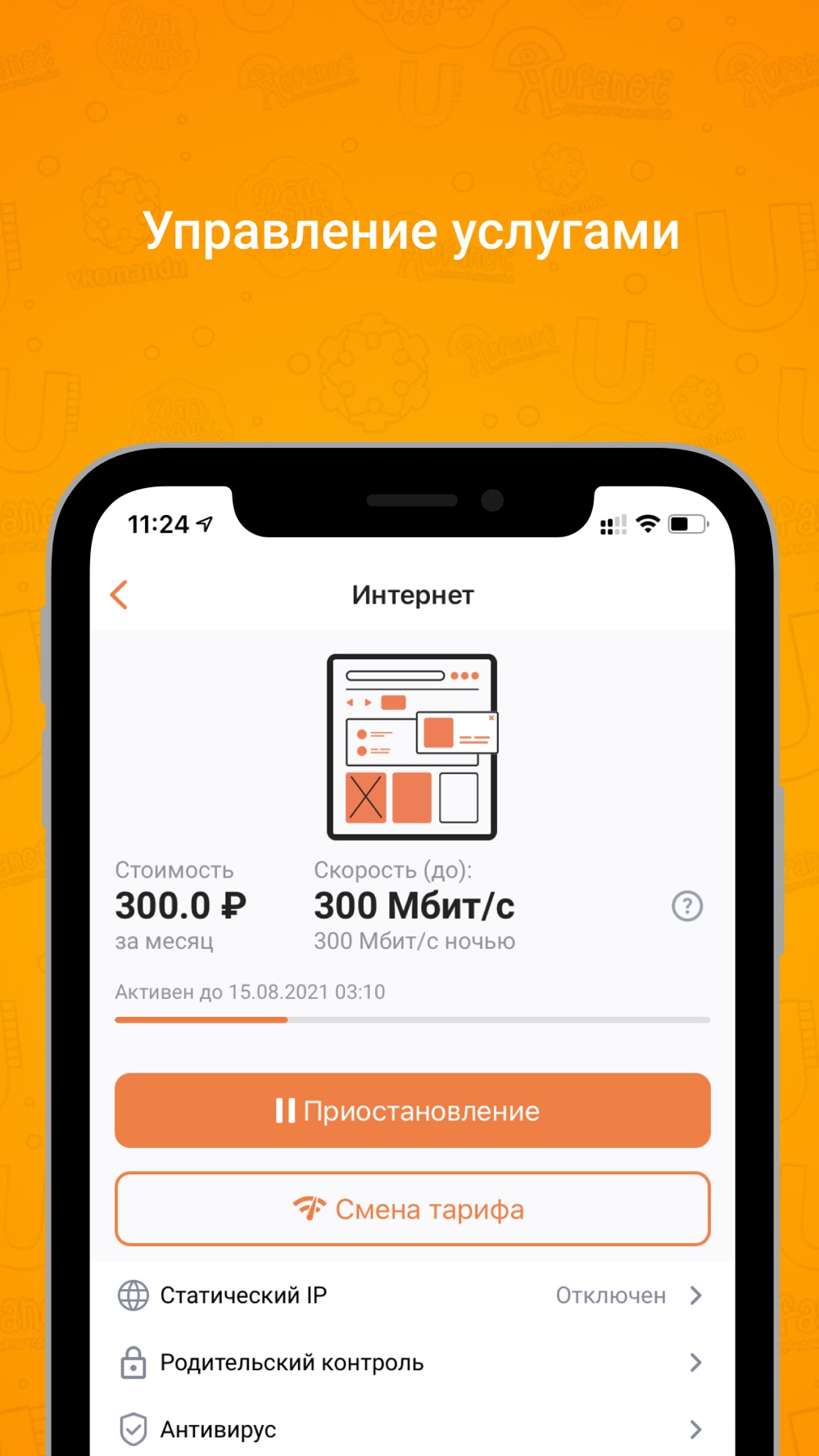 - Приостанавливать и, конечно, возобновлять услуги