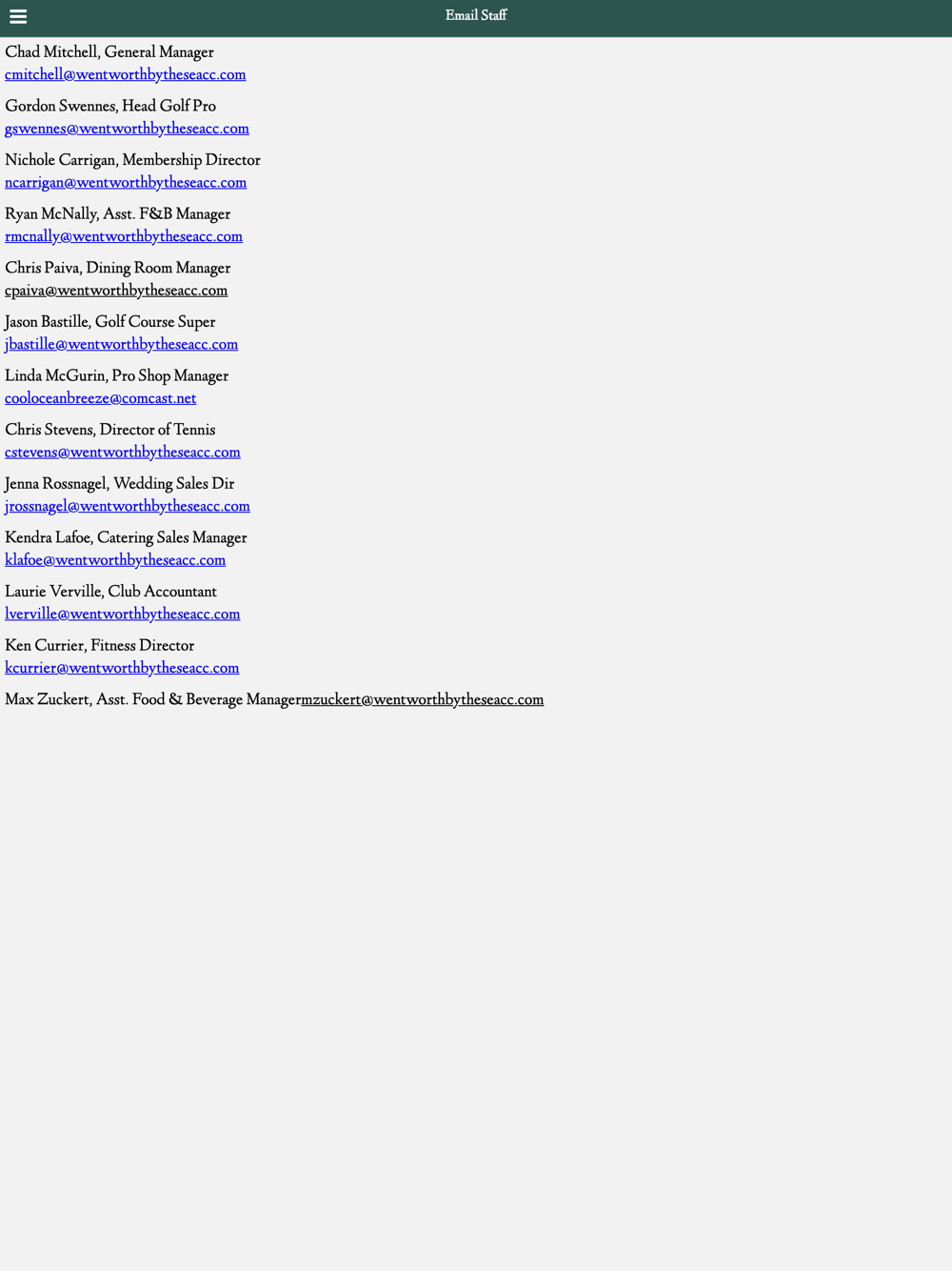 With the Wentworth By The Sea Country Club mobile application, users will be able to: