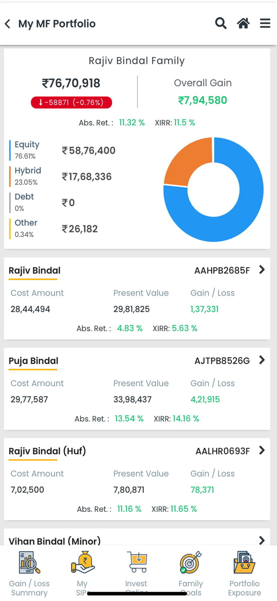With Mind Farmers App, you can get several views of your portfolio which will not only keep you abreast about its latest status, but also help you making important decisions for investment re-balancing, profit booking or stopping loss.