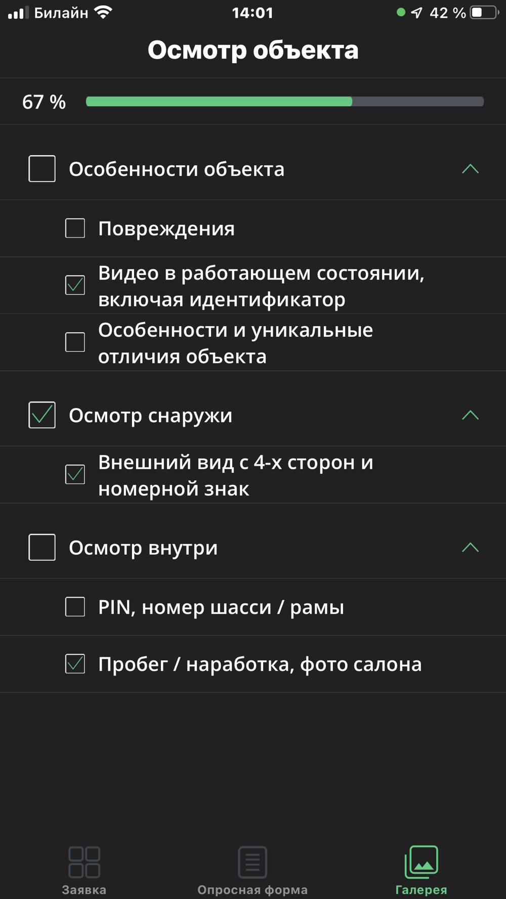 Приложение, в котором можно выполнить фотосъемку объекта, записать видео и заполнить анкету по осмотру.