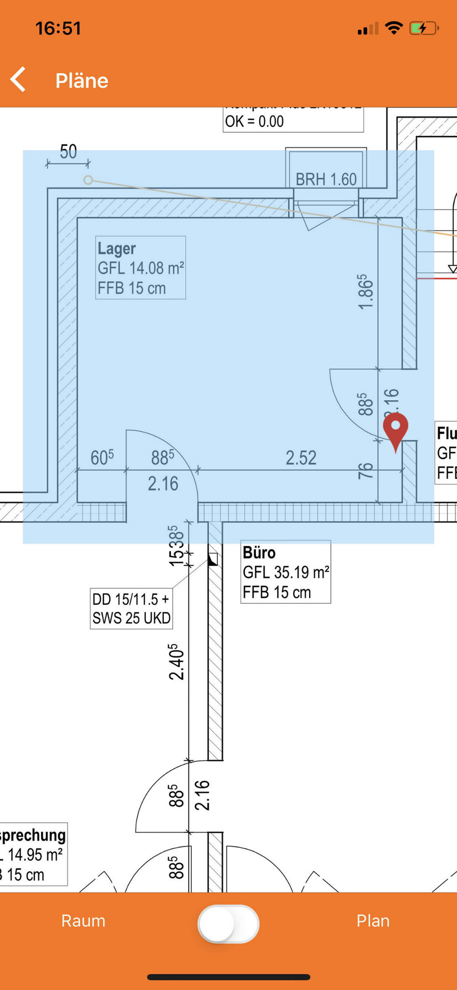 Dokumentieren Sie Reports (Mängel / Anweisungen / Dokumentation). Nutzen Sie mitgelieferte Abnahmekataloge. Sie wählen Räume, setzen Marker im Plan, erfassen Prioritäten sowie verantwortliche Firmen und Fristen. Fügen Sie Fotos, Audio, Text, Skizzen und Unterschriften hinzu.