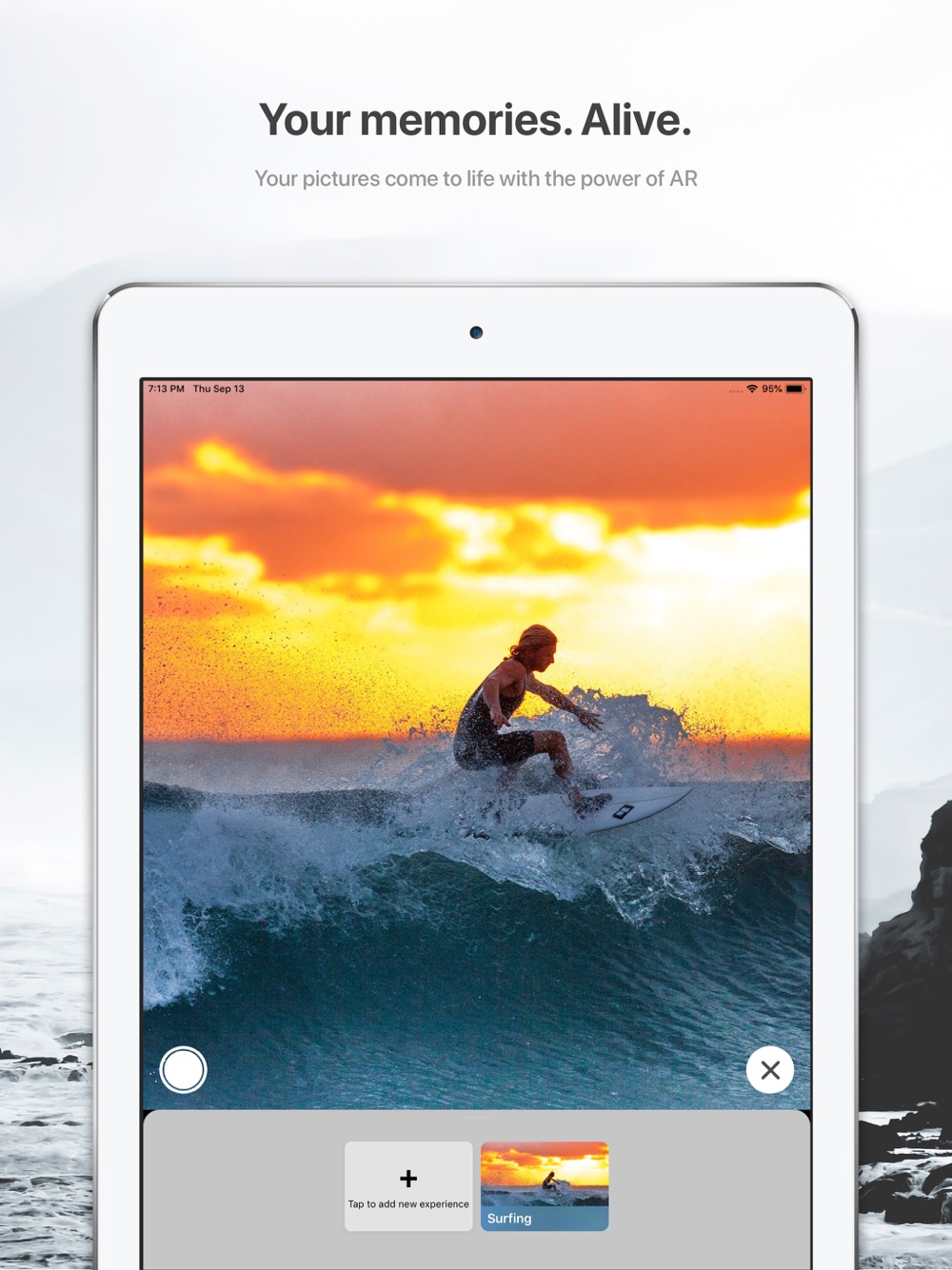 MemoAR utilizes the brand new technologies to provide visually realistic and rich experiences. Every experience is built around a real-life image. This may be a photo from your family album or a picture at a gallery. After selecting (or scanning!) the picture, the user can select the way(s) in which he or she wants to augment it. The first way is, of course, to replace the image with a video. If the user has selected a Live Photo, it will be animated automatically with no further actions required. When the user taps ‘Done’ and sees the picture through the camera, the real magic happens. The photo truly comes to life in real-time!