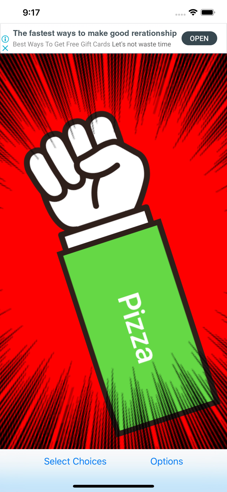 2. Touch the screen that shows cards with choices. Then the app starts Rock-Paper-Scissors automatically.