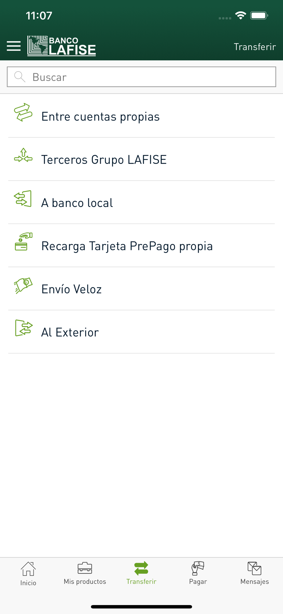 - Realizar transferencias a terceros de forma libre, con LAFISEid o con Pre Registro de beneficiarios a:
