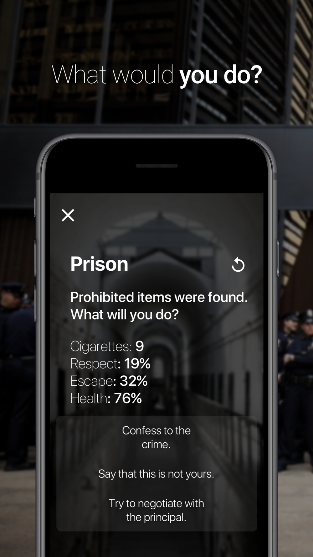 Try to successfully escape until you are fried in the electric chair and remember that every choice you make can result in dramatic consequences.