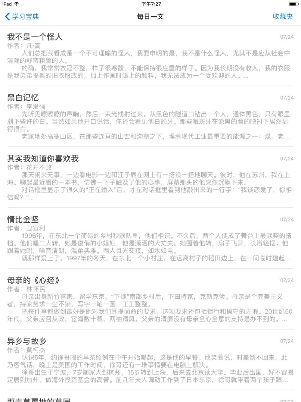 - 收集上万篇文言文、古诗和古词,简洁实用的文章查看界面,原文译文对照看。