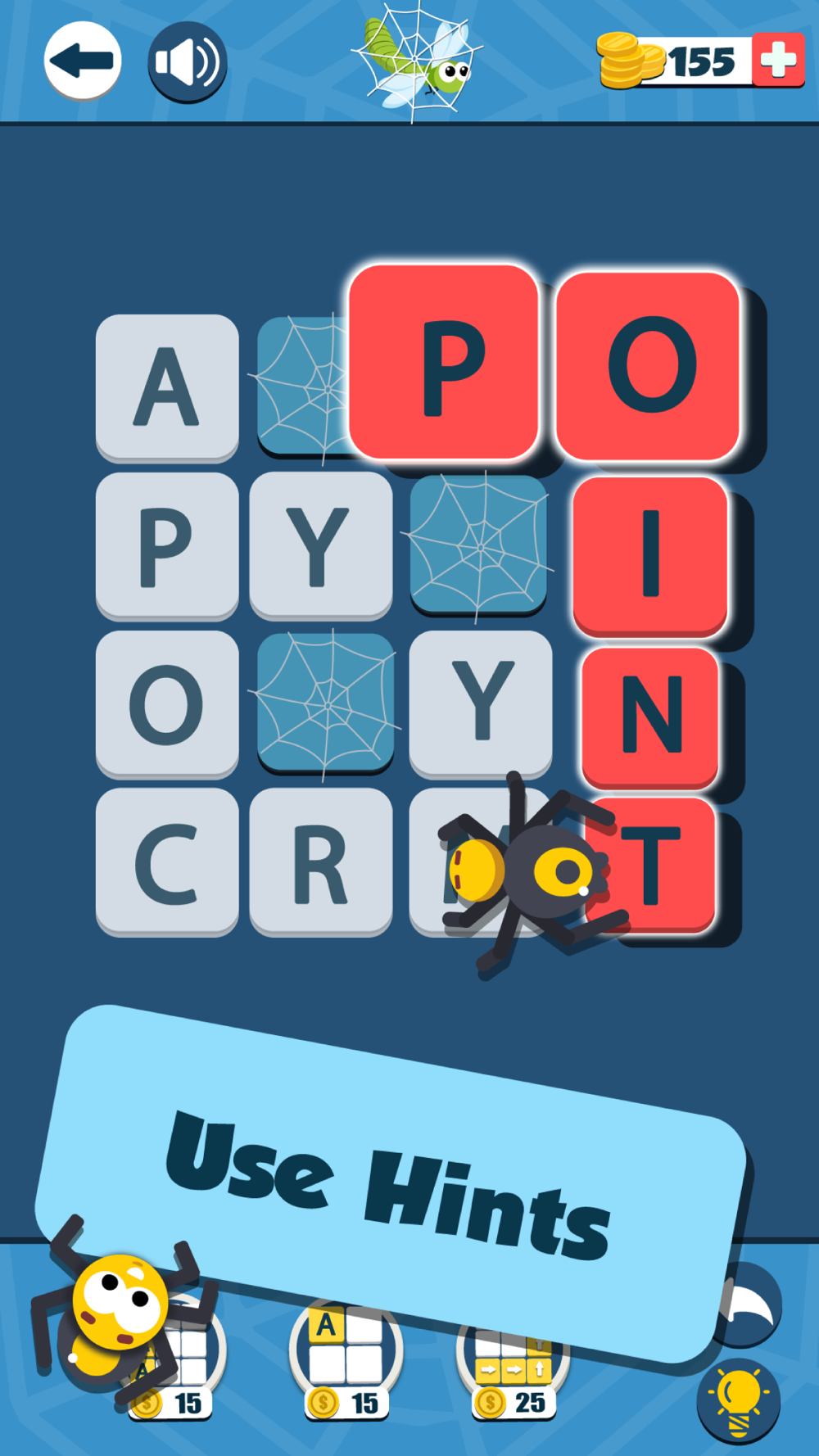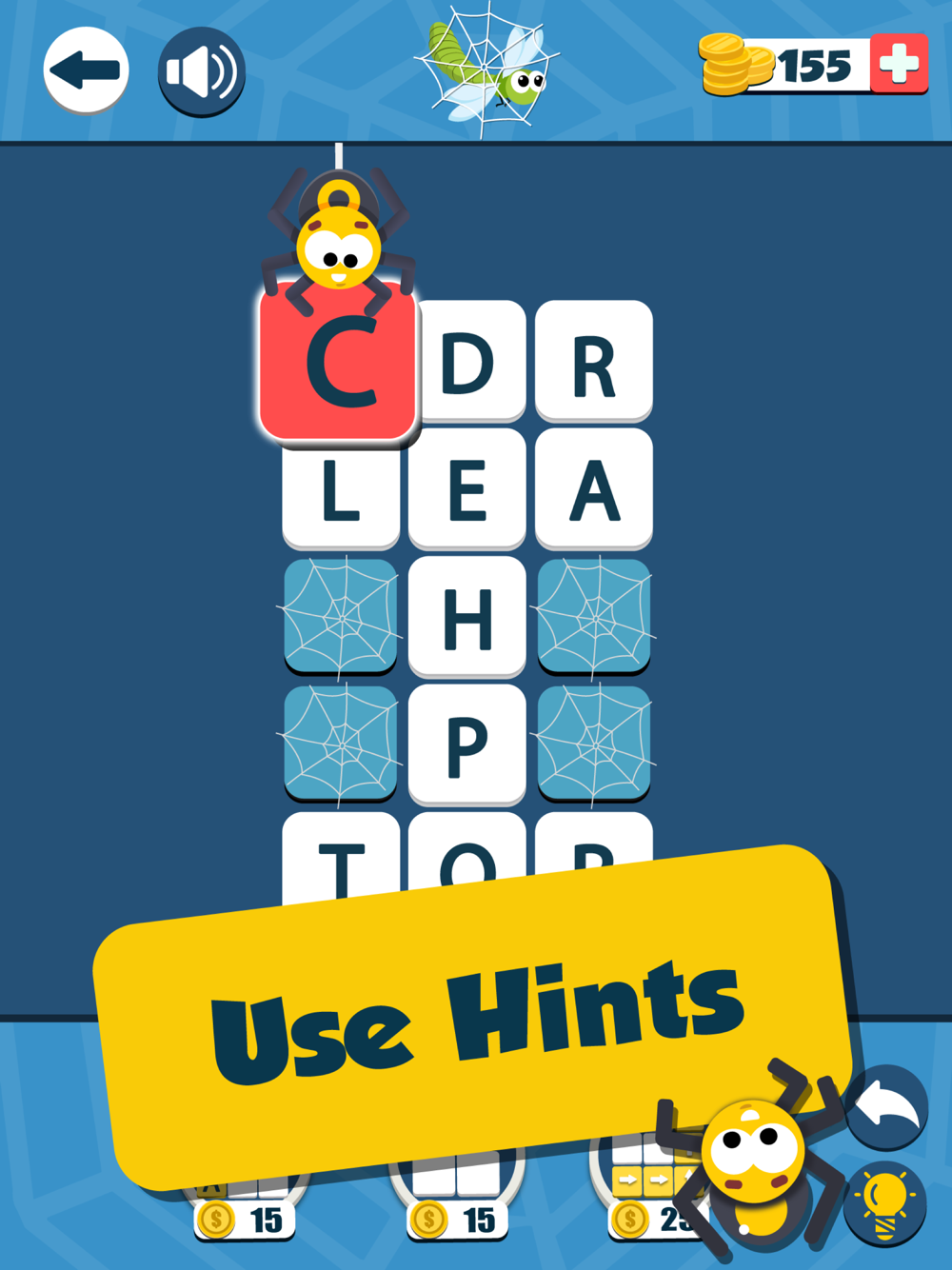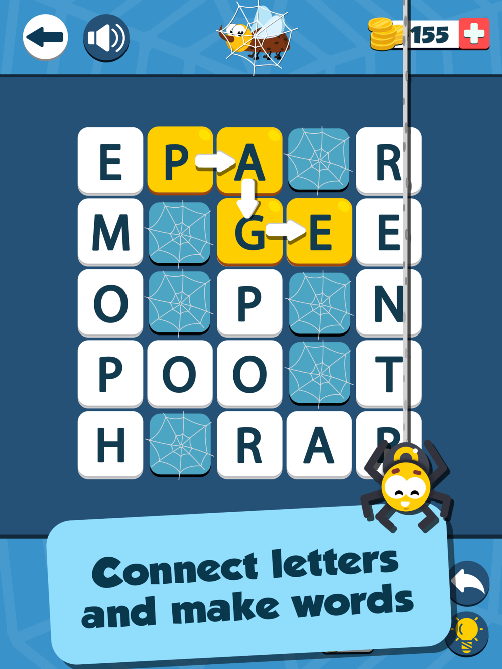 You need to make word search and find all hidden words and help your friends to escape from the spider web and get out.