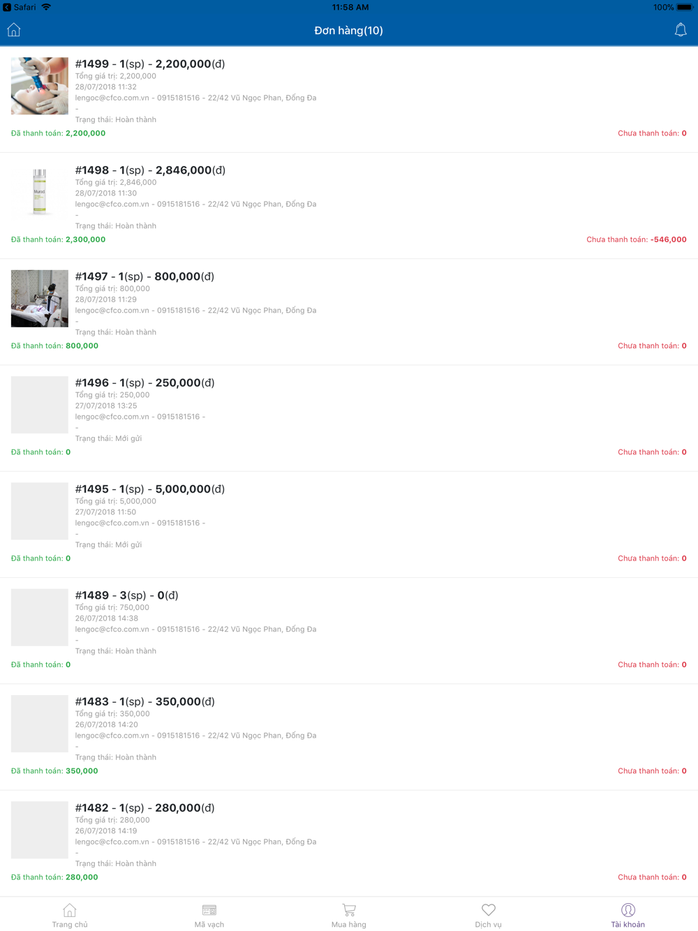 - Quản lý dịch vụ, đặt lịch, đánh giá dịch vụ đã mua