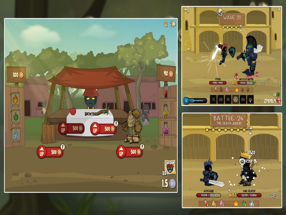Once you have created your perfect hero, you can enter the story! Before you start fighting in the arena you can train your skills with your scarecrow guide. You can train your strength, defense, accuracy and agility. Each type of training you must complete a different mini-game. As you level up you can improve your stats and also learn new moves and skills. During the battles, your character attacks automatically but you can control their special attacks and defensive skills etc. Can you become a legendary hero and defeat all the magical creatures?