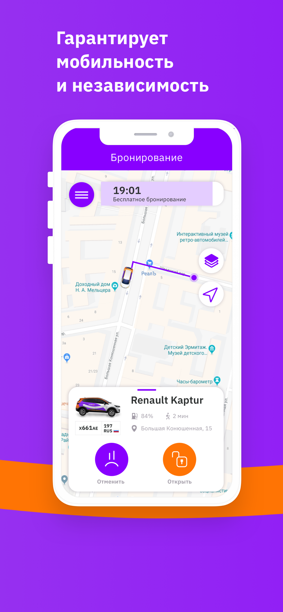 ● Мобильность. Вы ни от кого не зависите и не привязаны к автомобилю. Просто берите автомобиль, когда хотите и оставляйте в удобном для вас месте, не нарушая ПДД.