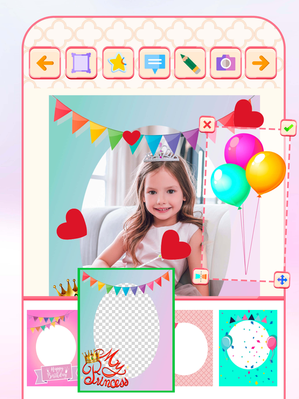Princess Party Photo Frames is a framing app with a user friendly photo editor tool to create lovely birthday invitation cards in your own style. Add stickers and text on your images. Decorate your photos with invitation notes.