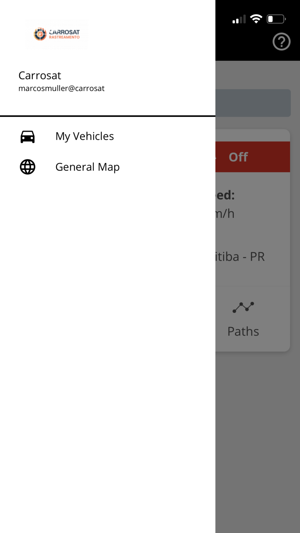 Para usar o aplicativo Carrosat, você deve usar o mesmo nome de usuário e senha usado para acessar a plataforma de rastreamento web.