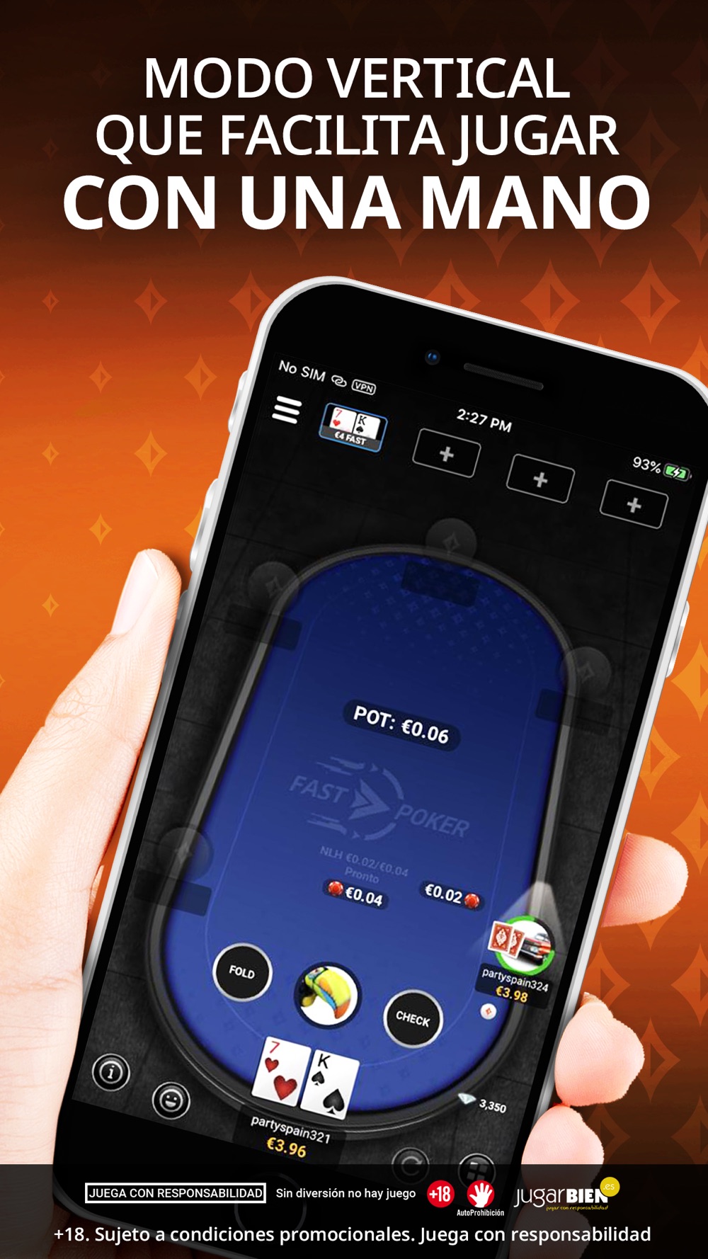 Disfruta del poker online en cualquier momento con la app de partypoker. Toma asiento y participa a increíbles juegos de poker como TORNEOS o CASH GAMES. Juega en modo demo o elige la acción con dinero real en Sit & Go, torneos multimesa, Cash Game y nuestros SPINS, donde podrías convertir una entrada de 5 € en un premio de 1 MILLÓN de €.