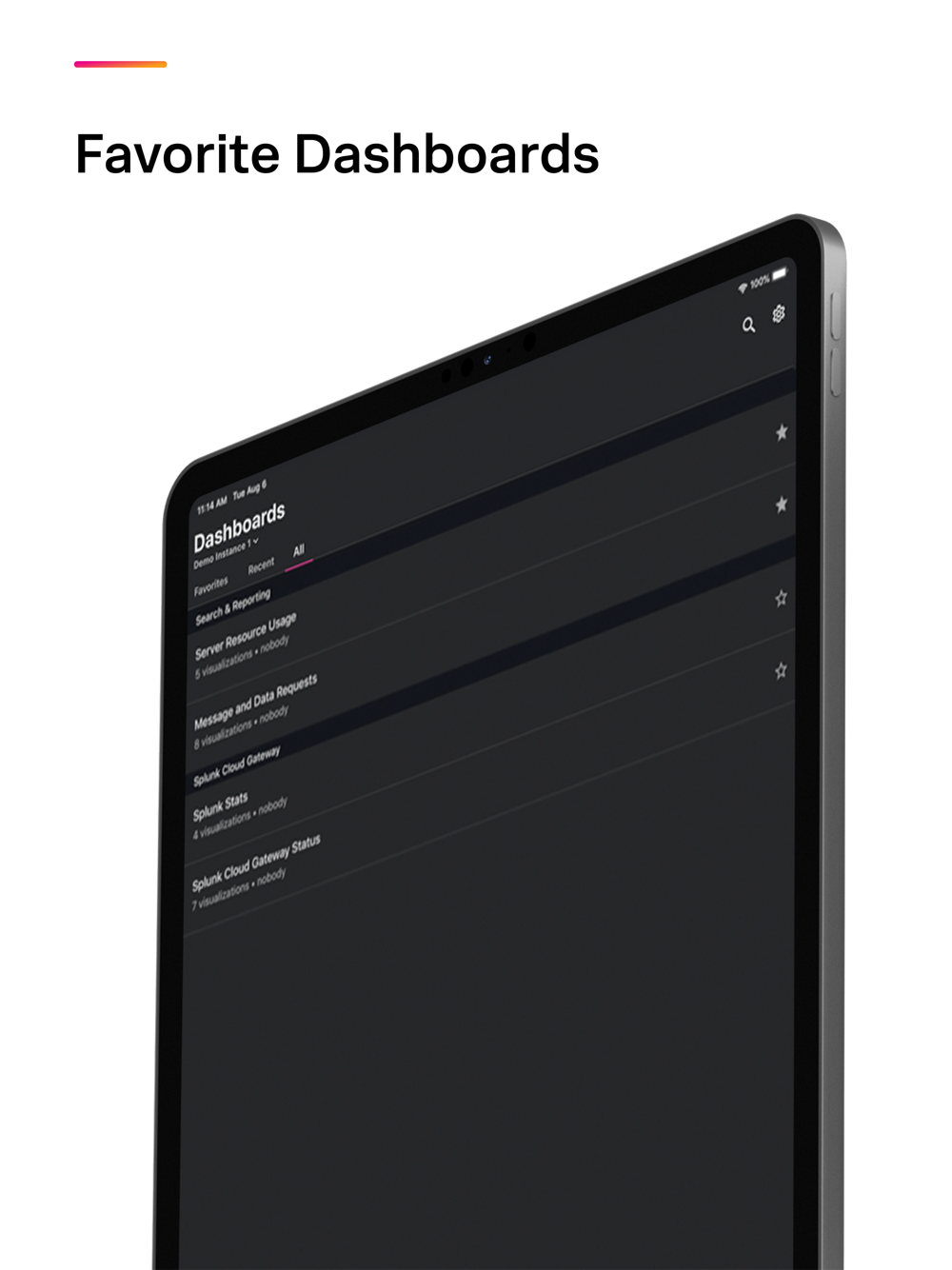 - View, filter, and search for dashboards and alerts from your Splunk Enterprise or Splunk Cloud instance.