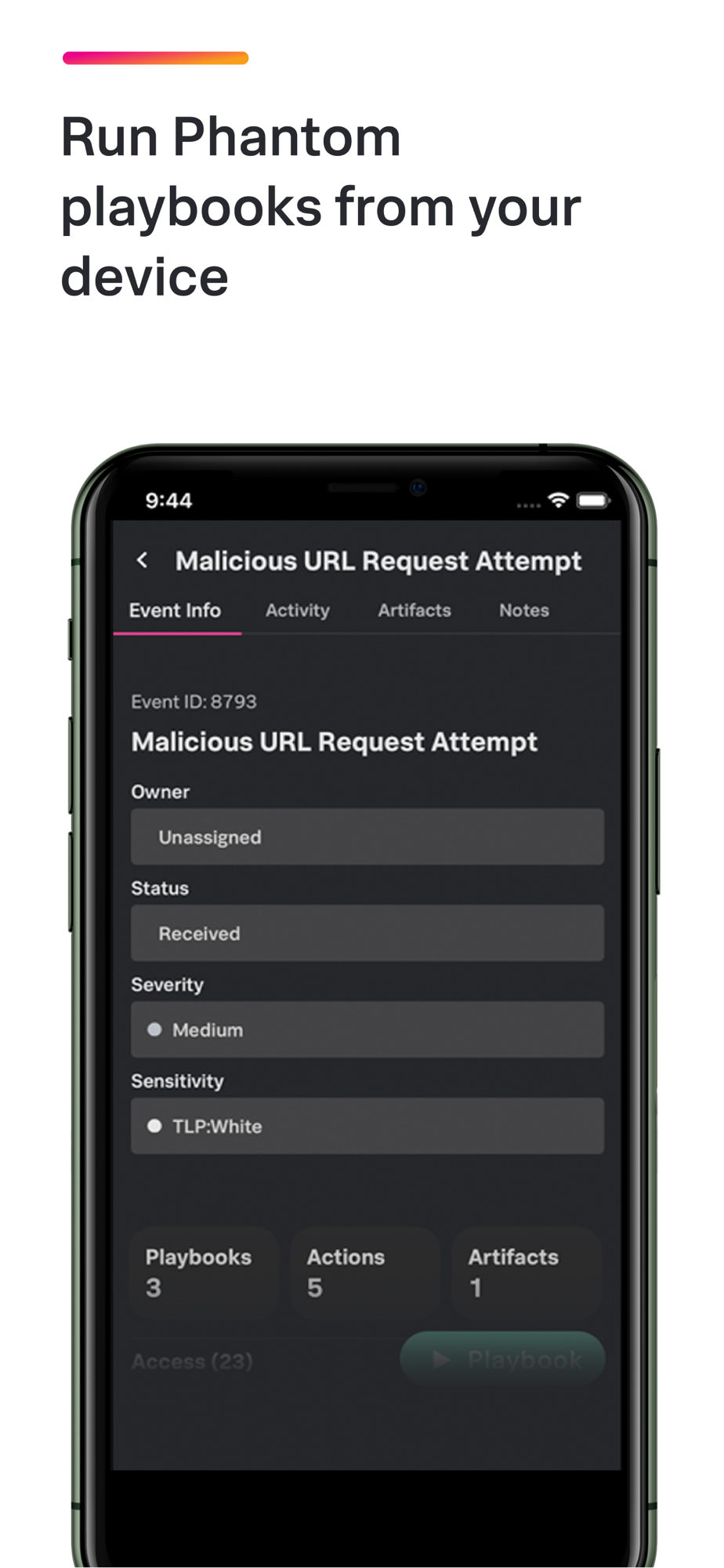 - View and filter events and notifications, complete or delegate tasks, and run playbooks in Phantom Mobile.