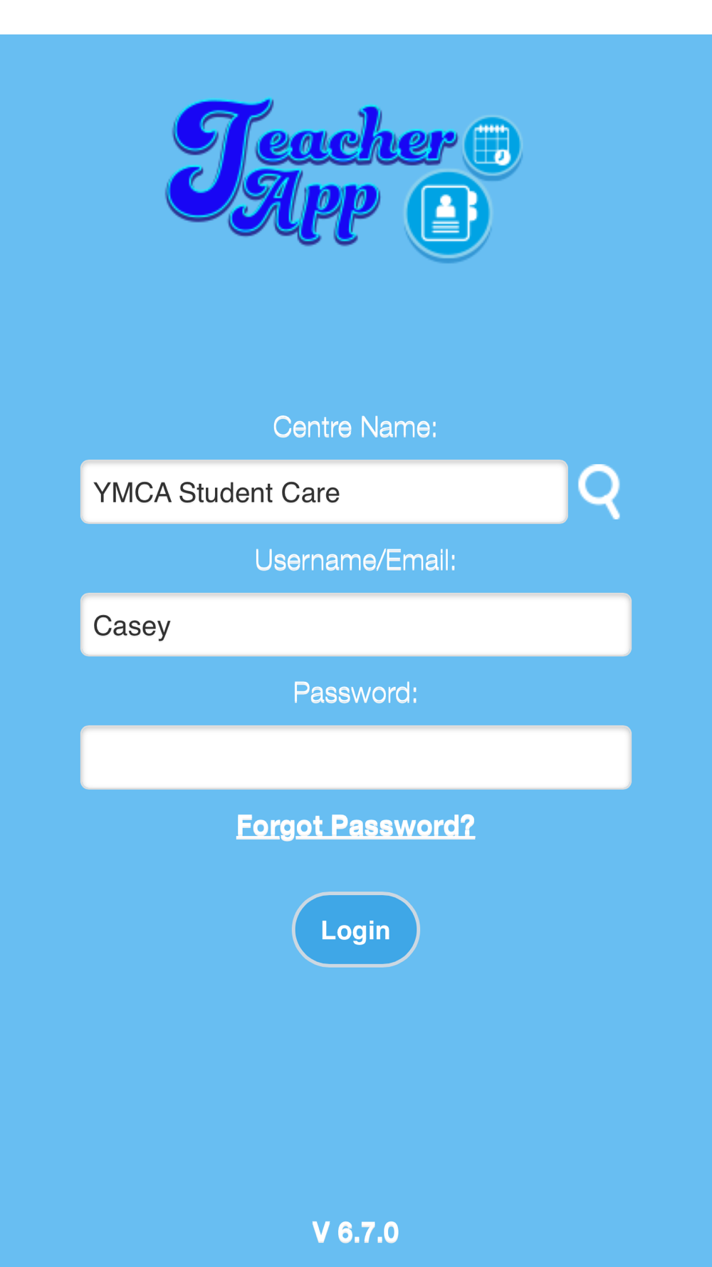 Functions for teachers to take attendance, apply for leave, enter centre logs, upload files and receive announcements.