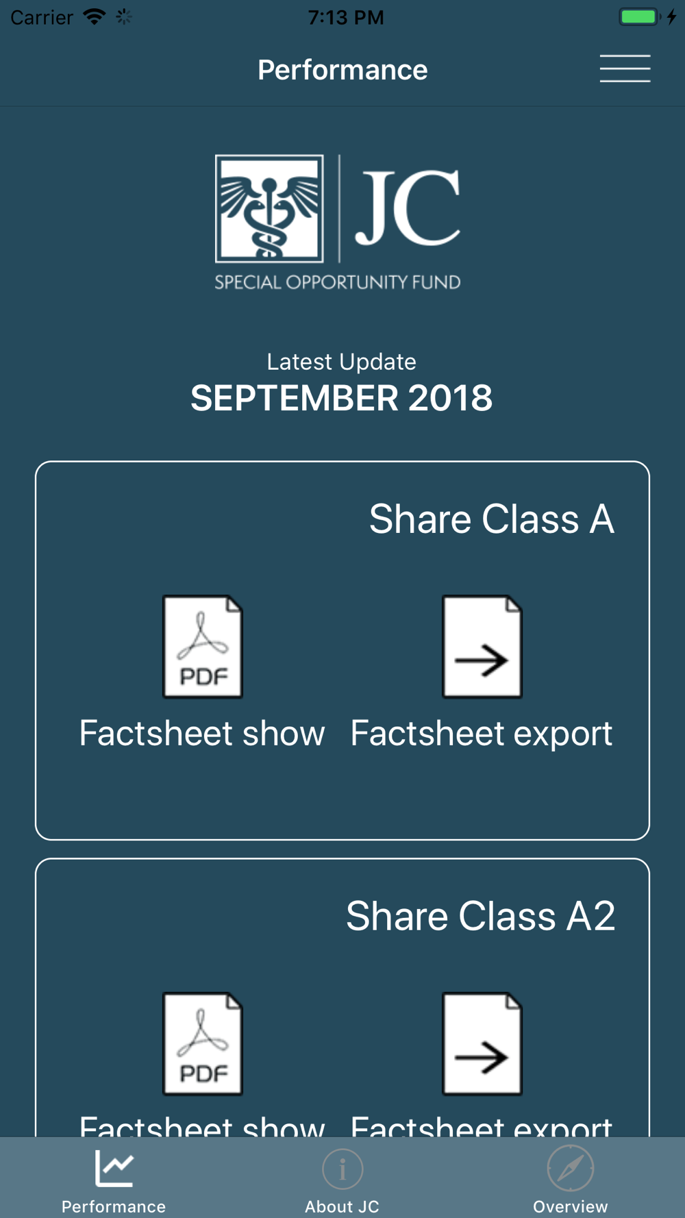 - Performance // Factsheet monthly updated, with Push Notification, if selected from the user