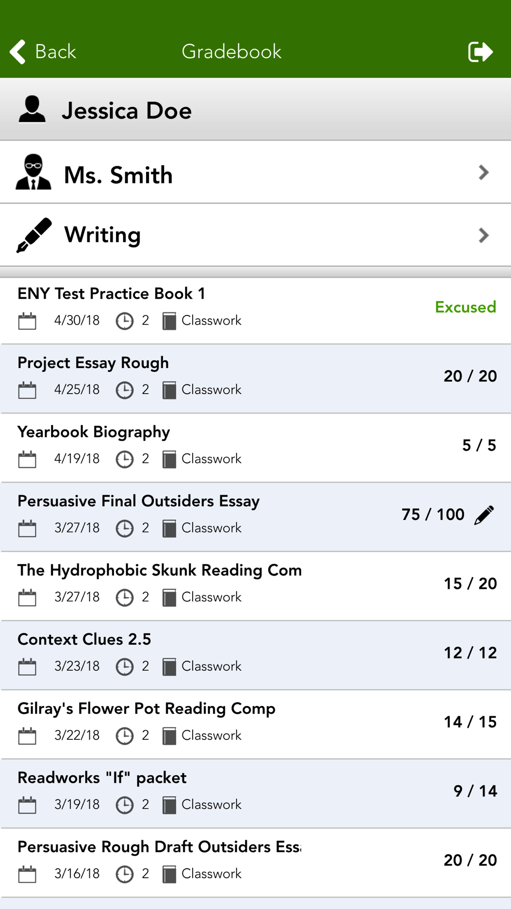 Your student's data will only appear if your child's teacher is using Report Card Maker. Ask your child's teacher if they are using RCM.