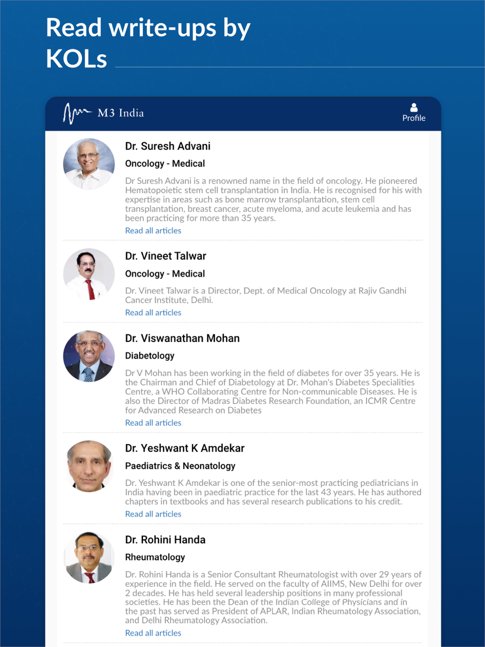 M3 India app is a free and exclusive platform for Indian Doctors that helps them stay updated with practice-relevant information, while saving them time. M3 India is owned and managed by Neuroglia Health Private Limited (NHPL). Over 5mn+ Doctors across 9 countries trust M3 Group for their daily practice.