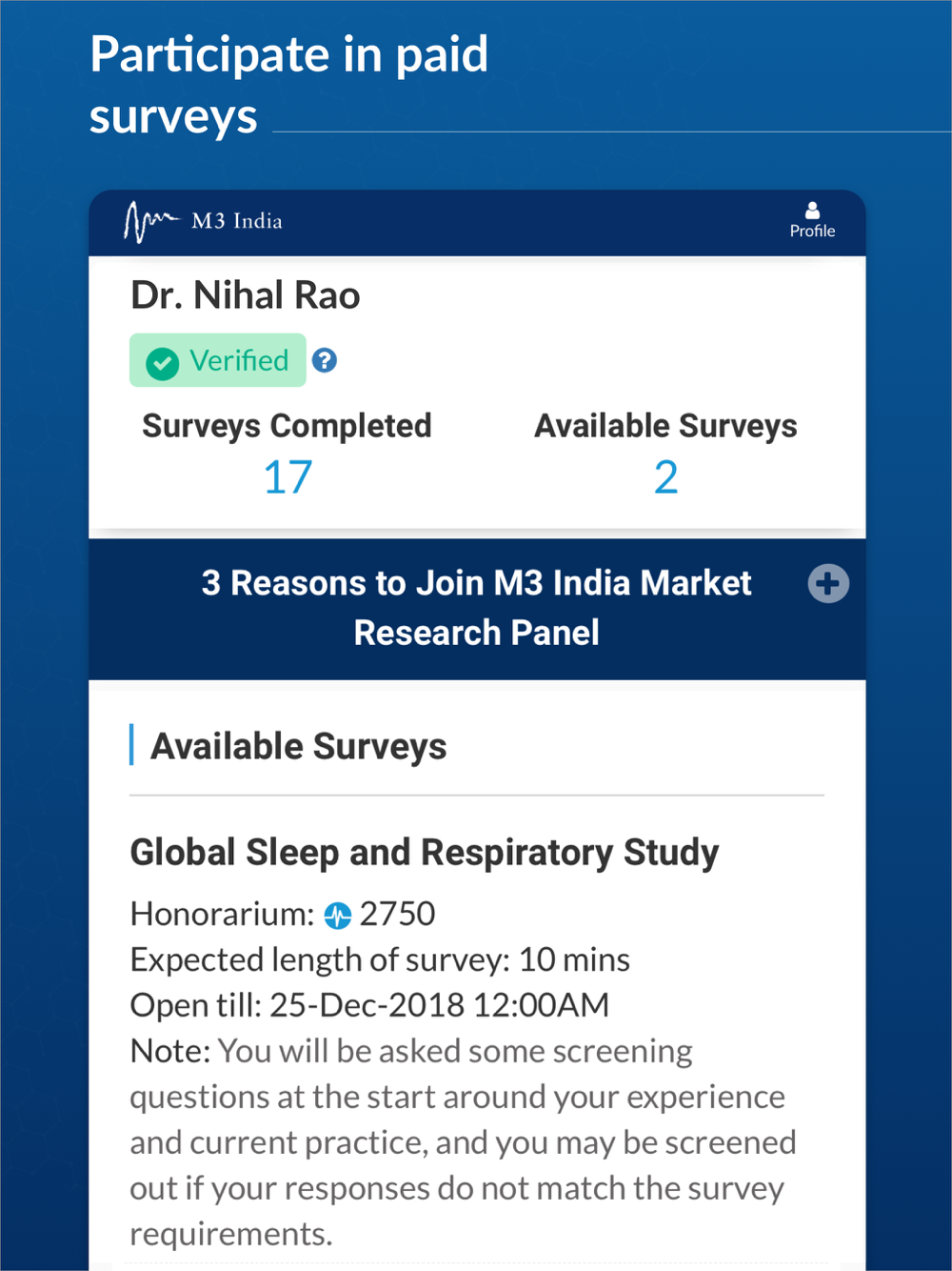 Doctors can join our Market Research panel to take part in paid Market research studies and earn honorarium while also contributing to developments in Healthcare!