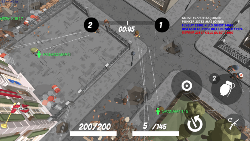 The simplest over the top multiplayer shooter up to 25 players online in one game. Enjoy comical cartoon graphics as you battle to see who the best player is. Win the daily or weekly win charts