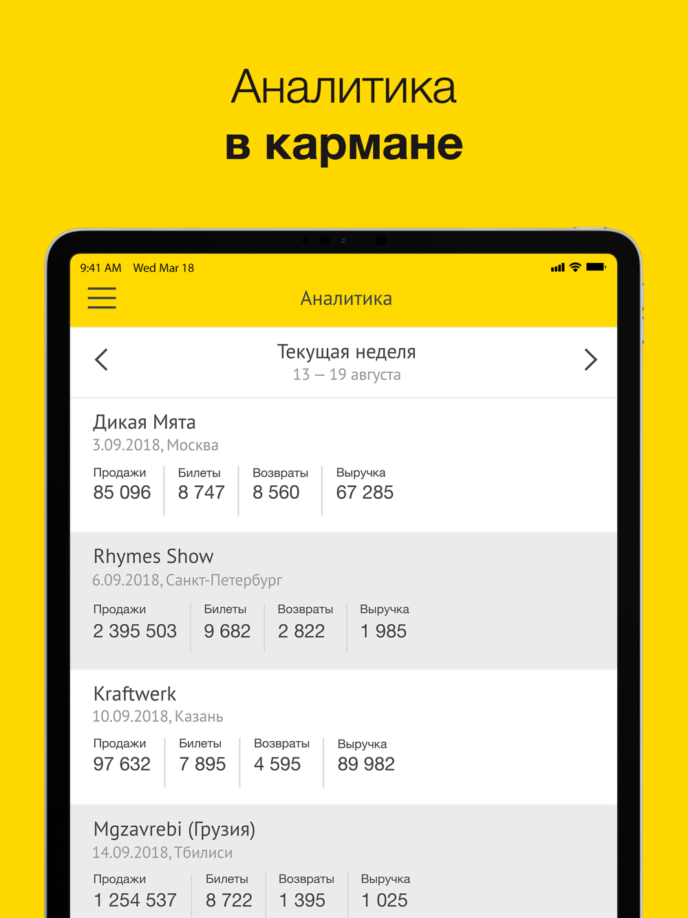 Statistics, analytics and ticket sales dynamics are now available right in the Tickets Cloud app.