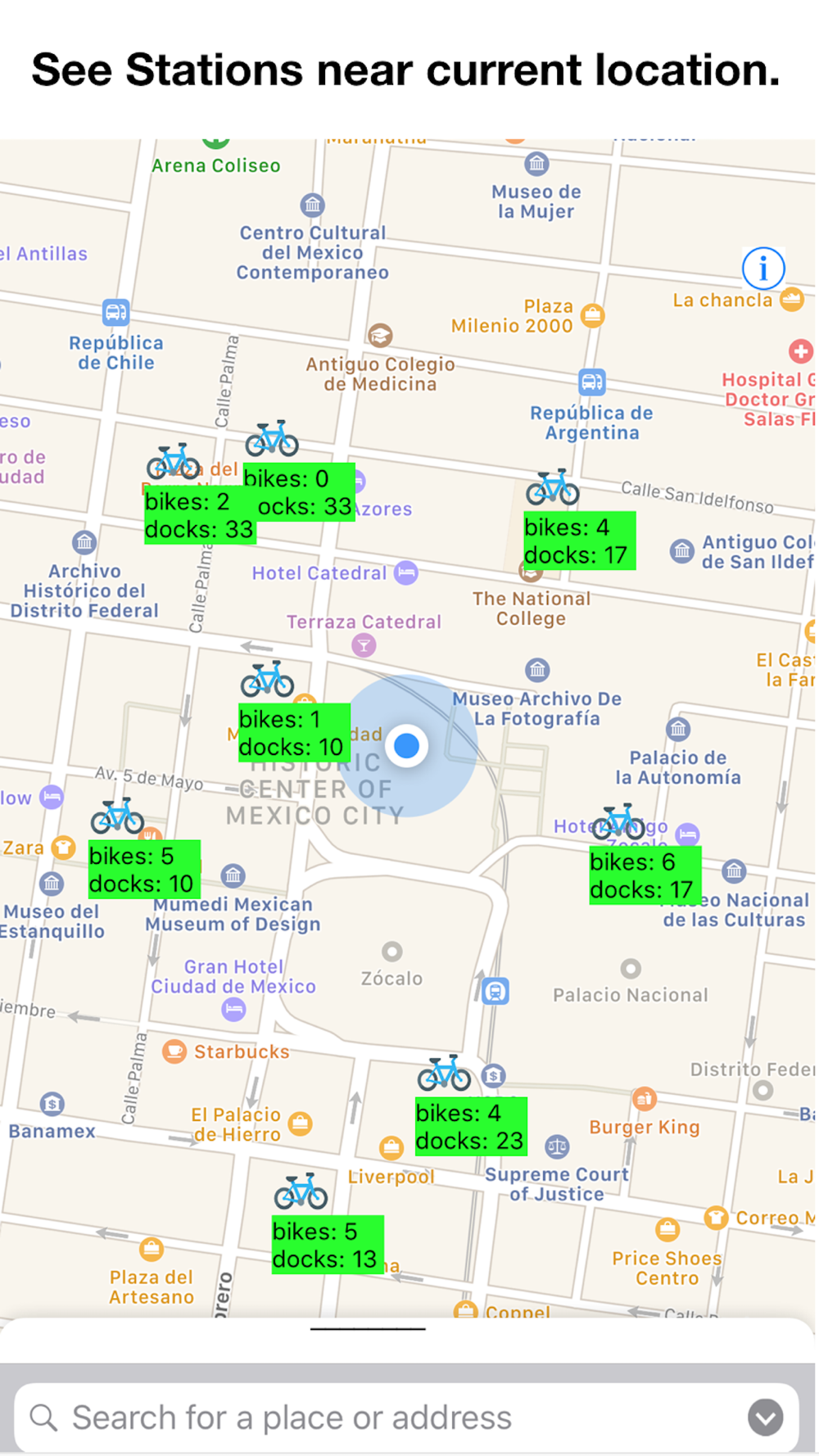 Gets the information you need to quickly choose a bike sharing station to use. Bike stations included for Mexico City area.
