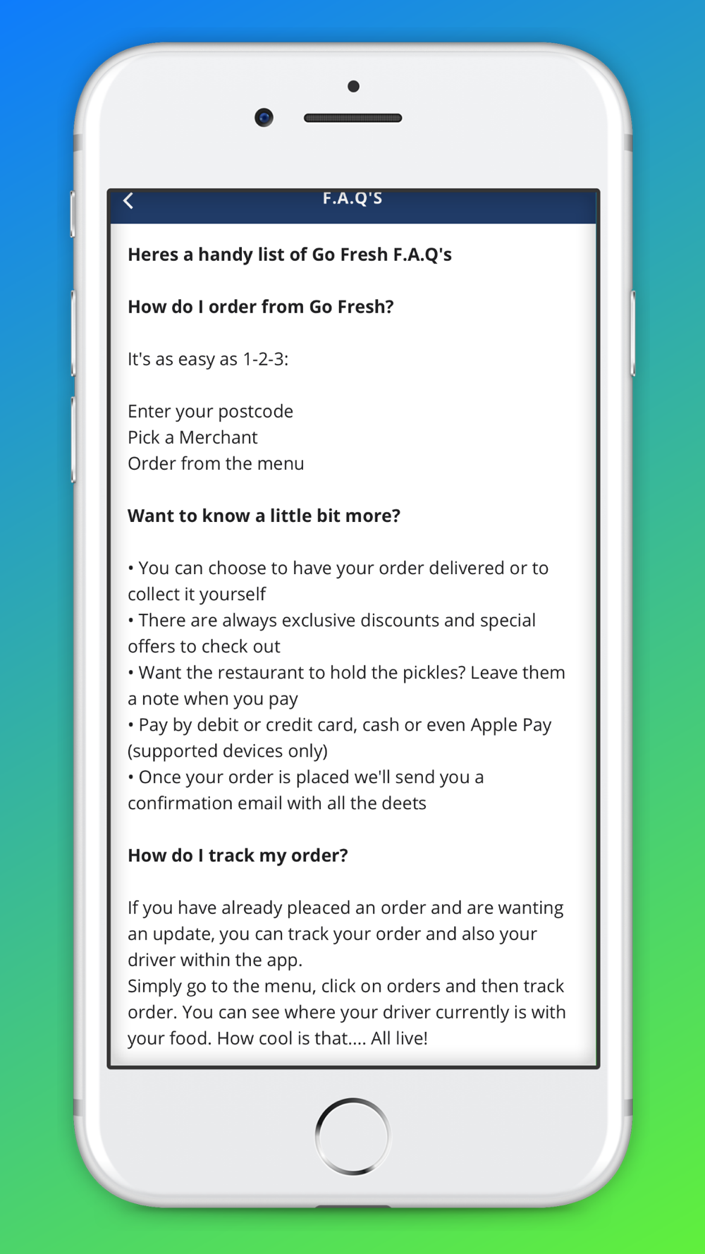 Our app takes the hassle out of ordering fresh produce. No longer will you be stuck looking for paper menus down the back of the sofa, because now you can tap your phone and order in seconds. You even can pay for your food via the app too, either with PayPal or by card. But if cash is more your thing then you can still pay with cash on delivery.