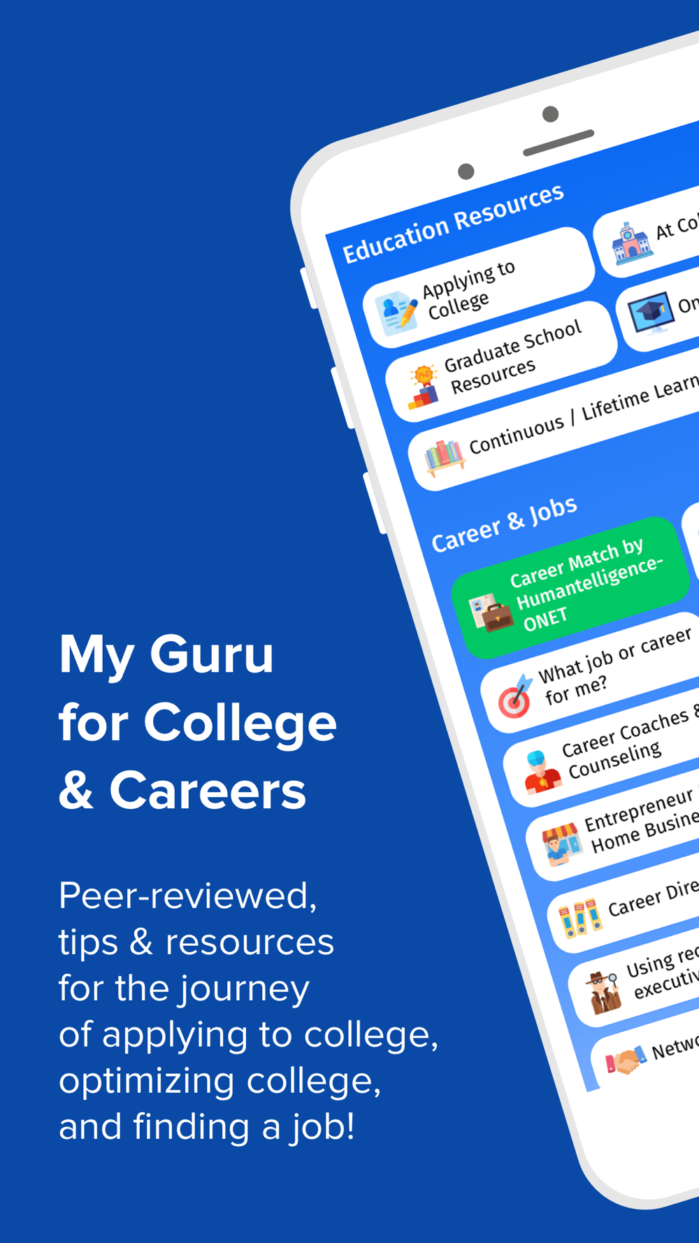 The largest peer-review source of resources for applying to and enjoying college and finding the right jobs post-college. Everything you need to know for life, school, and career if you are 14-25 years old.