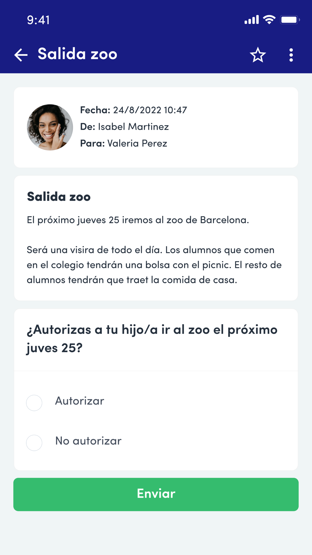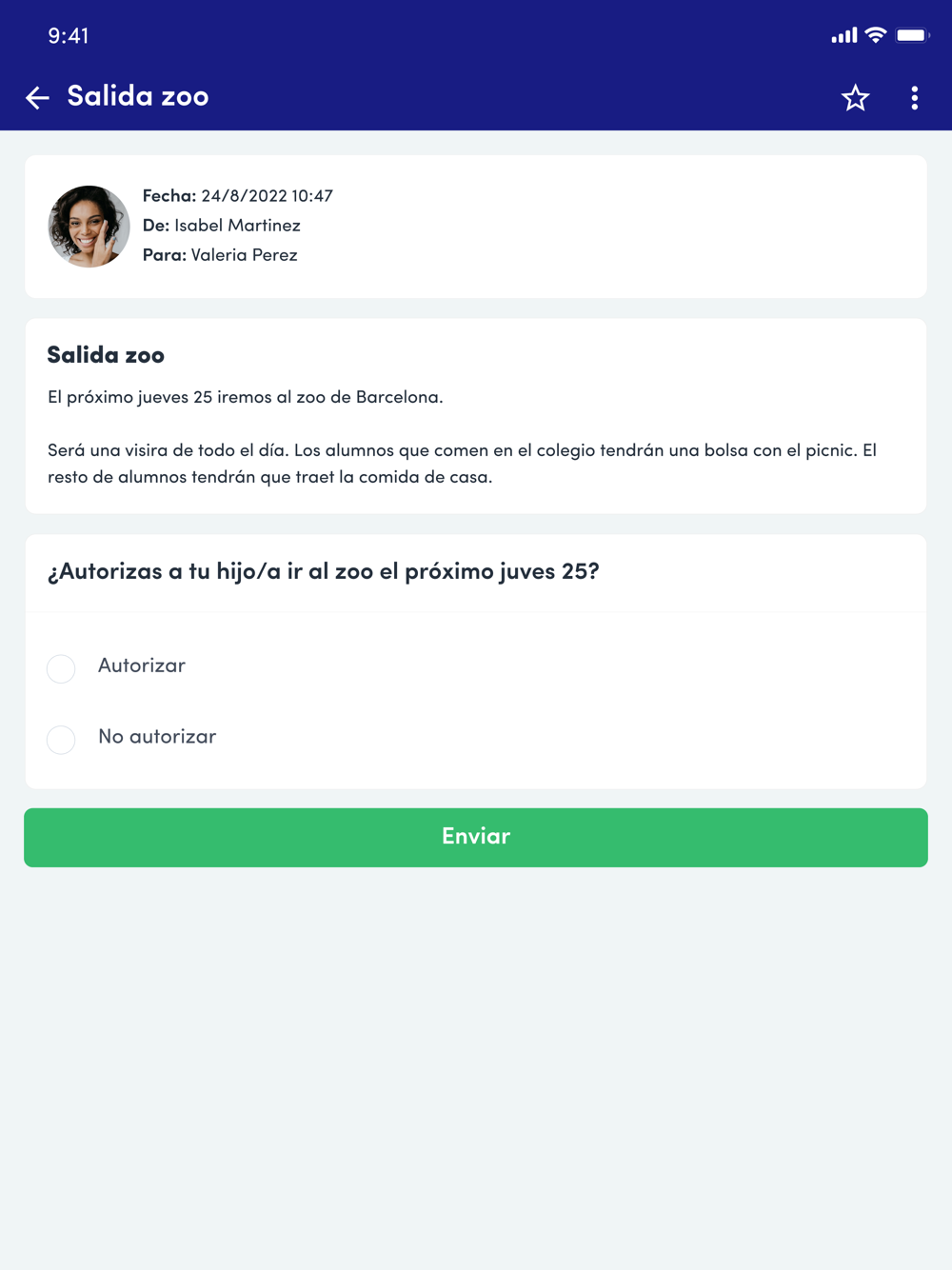 Los mensajes pueden ser en múltiples idiomas, y pueden contener archivos adjuntos (PDFs, fotos, videos, informes, notificaciones de ausencias o retrasos, etc). Mediante un sistema de comunicación privado y seguro entre escuela y usuarios, estarás al corriente de la evolución diaria de las clases.