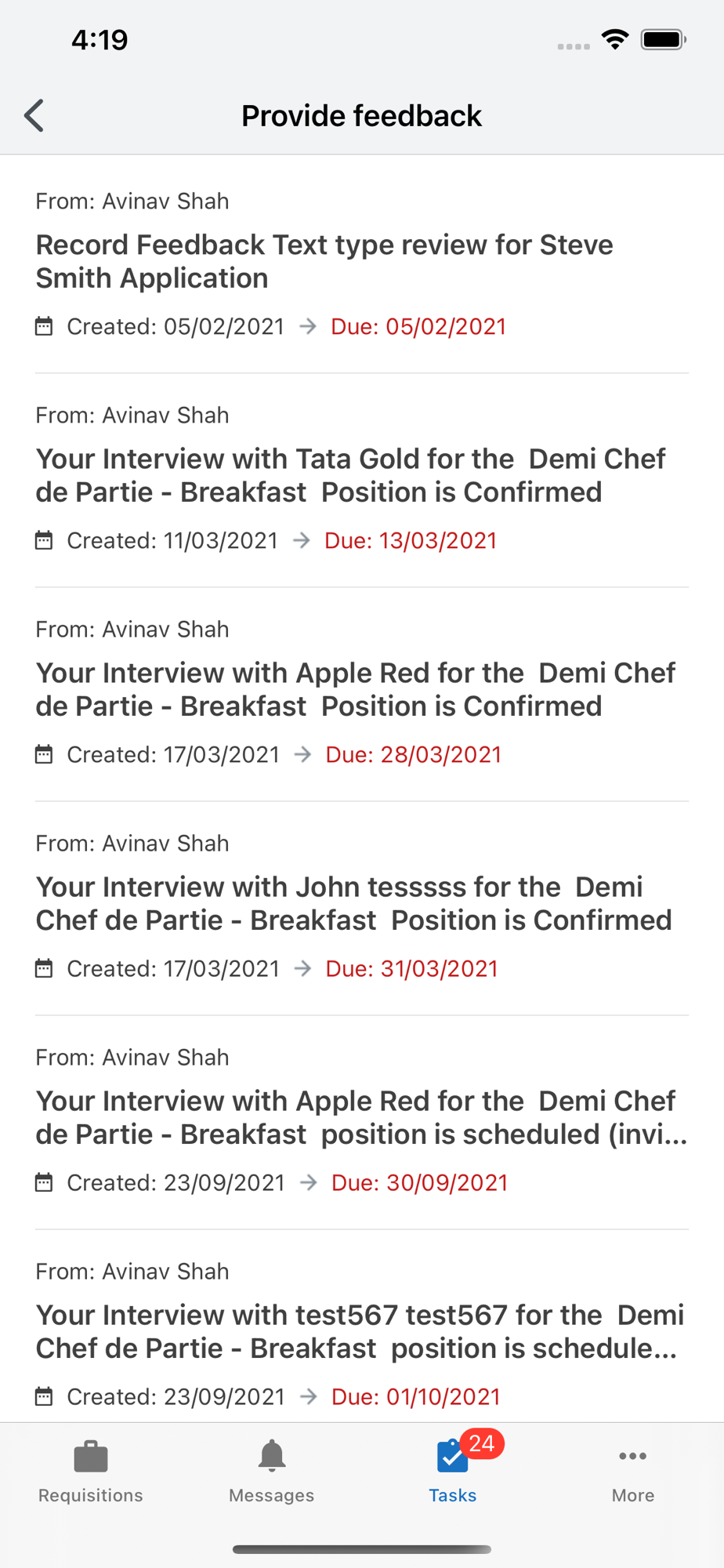 - Preview, review and give feedback on candidate from within the app