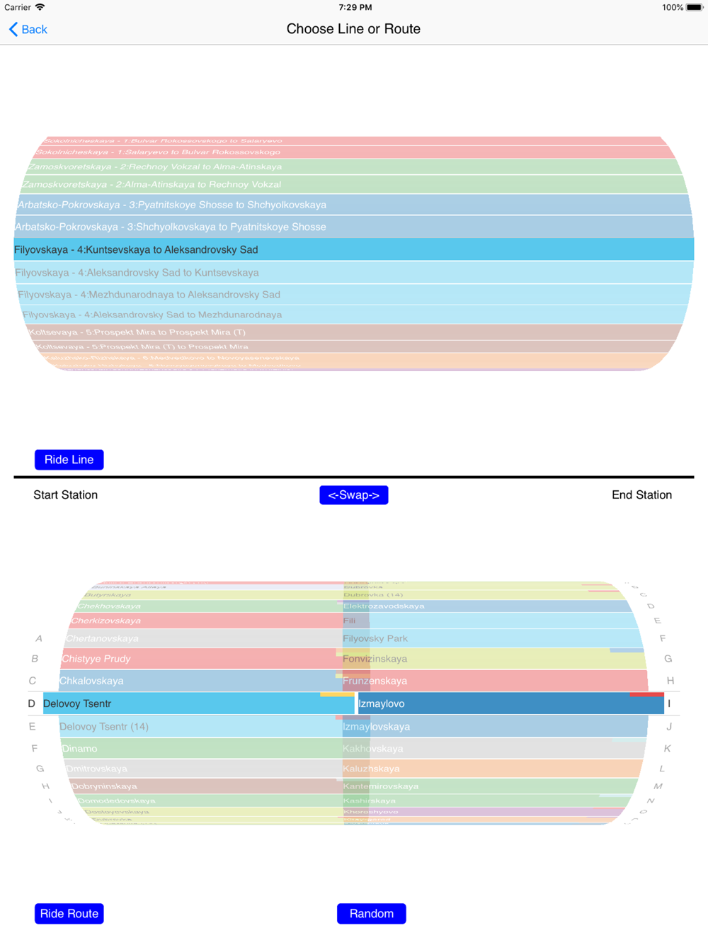 You can take a simulated ride on any of the systems lines, or choose a start and end station and ride on a calculated route between the two stations.