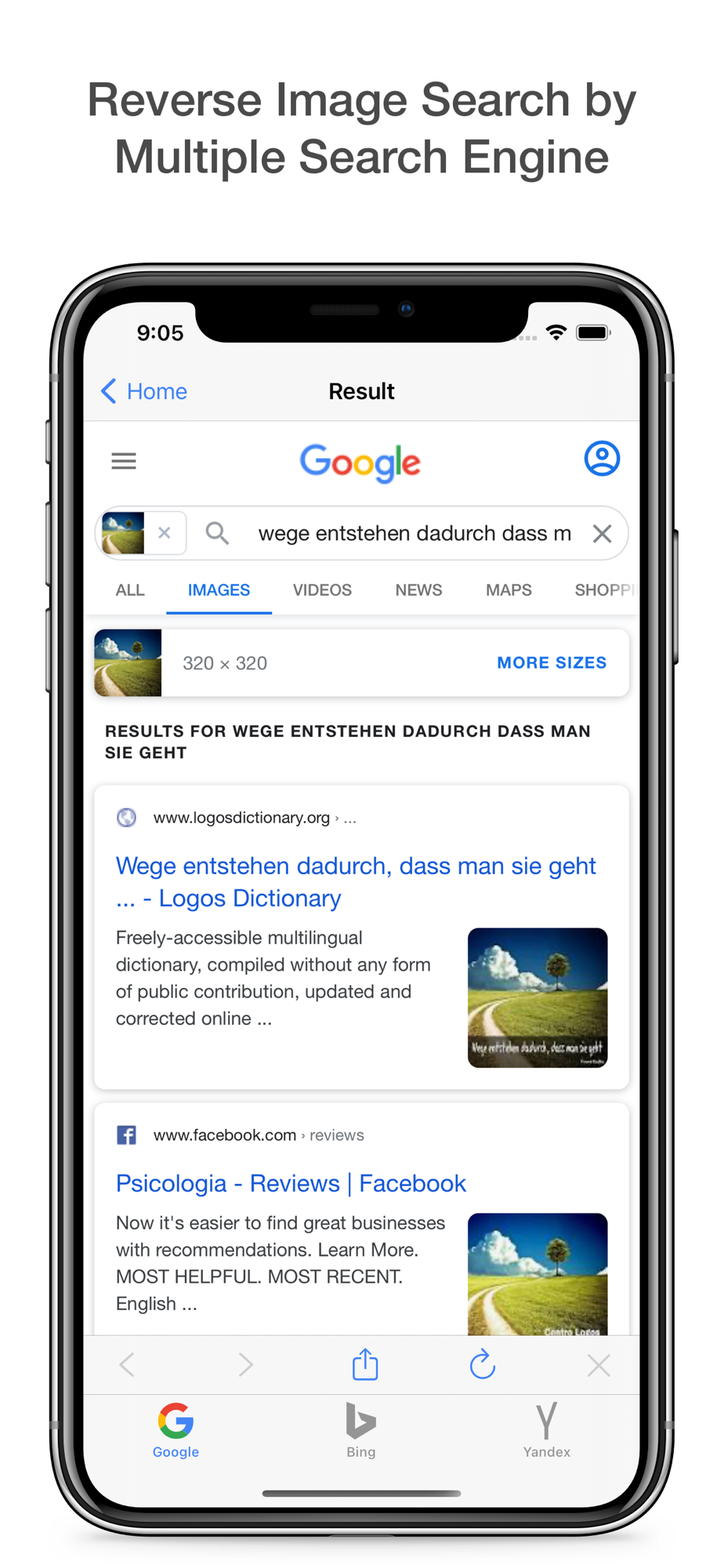 Reverse Image Search help you find similar images using Google, Bing and Yandex search engine.