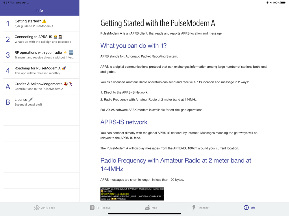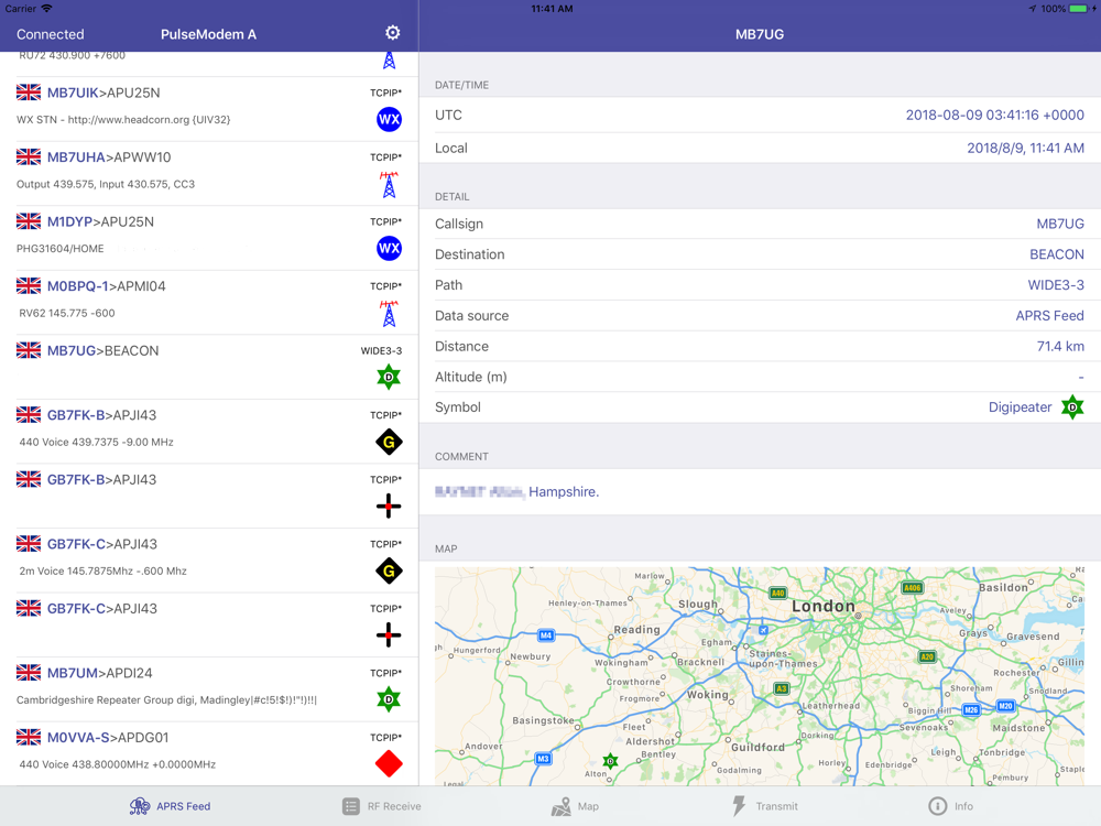 "PulseModem A" is an APRS client, that reads and reports APRS location and messages.