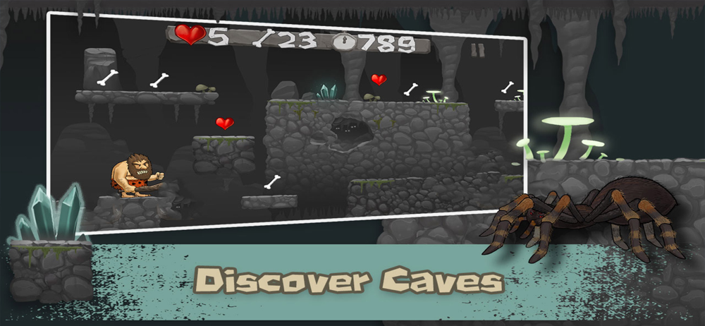 Caveman Chuck is a classic 2D platformer inspired by the many favorites of the genre. You’re taken back all the way to the Stone Age where you play the role of a crude caveman named Chuck. You’ll quickly realize he shares his cave with his wife, who is heavily invested in the relationship, and as things often have it, she yells at him rather frequently.