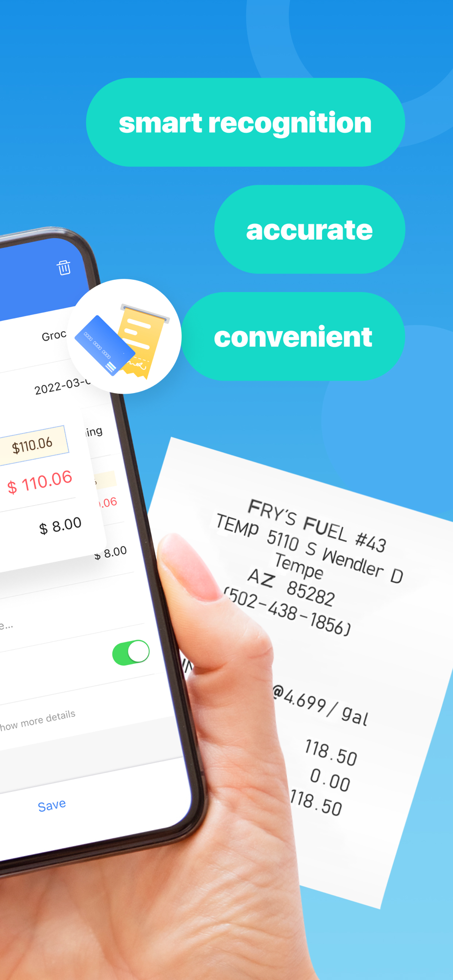 -Just snap a picture of a receipt and Receipt Lens automatically reads and exports all the details for you.