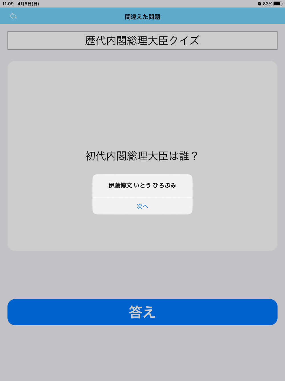 ●間違えた問題の答えを確認できます。(確認後データは消去されます。)(24時間後に間違えた問題データはすべて消去されます。)